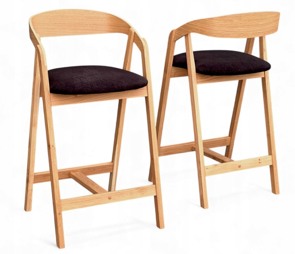 2 x Dębowy hoker z tapicerowanym siedziskiem
