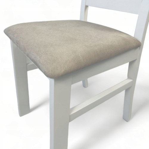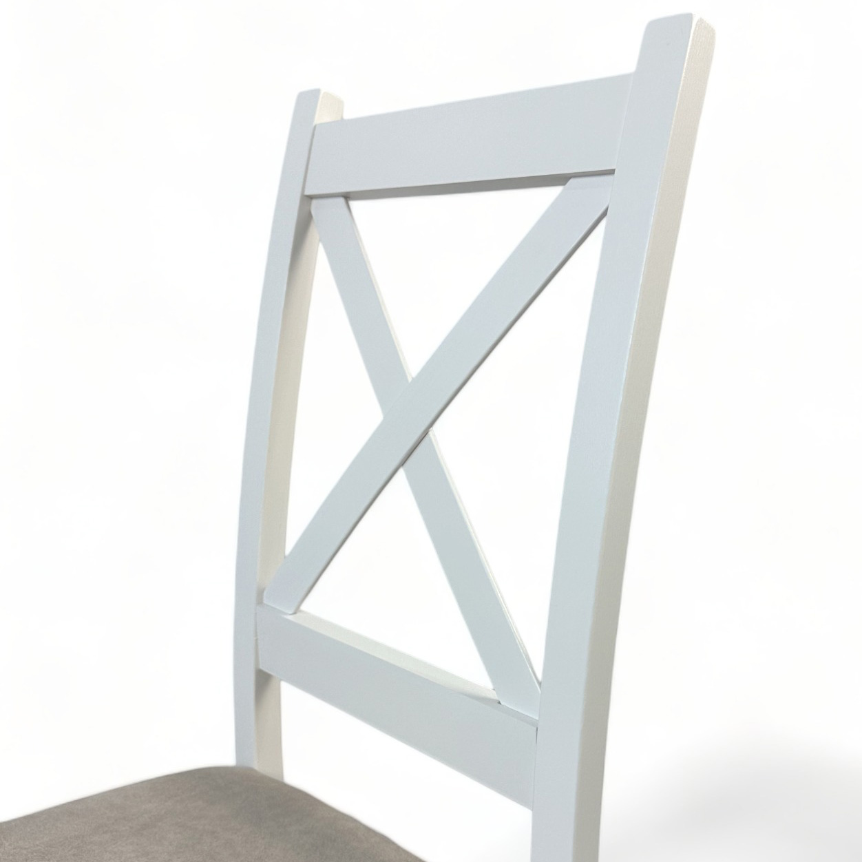 2x Krzesło Białe Drewniane Krzyżak z tapicerowanym siedziskiem Beż