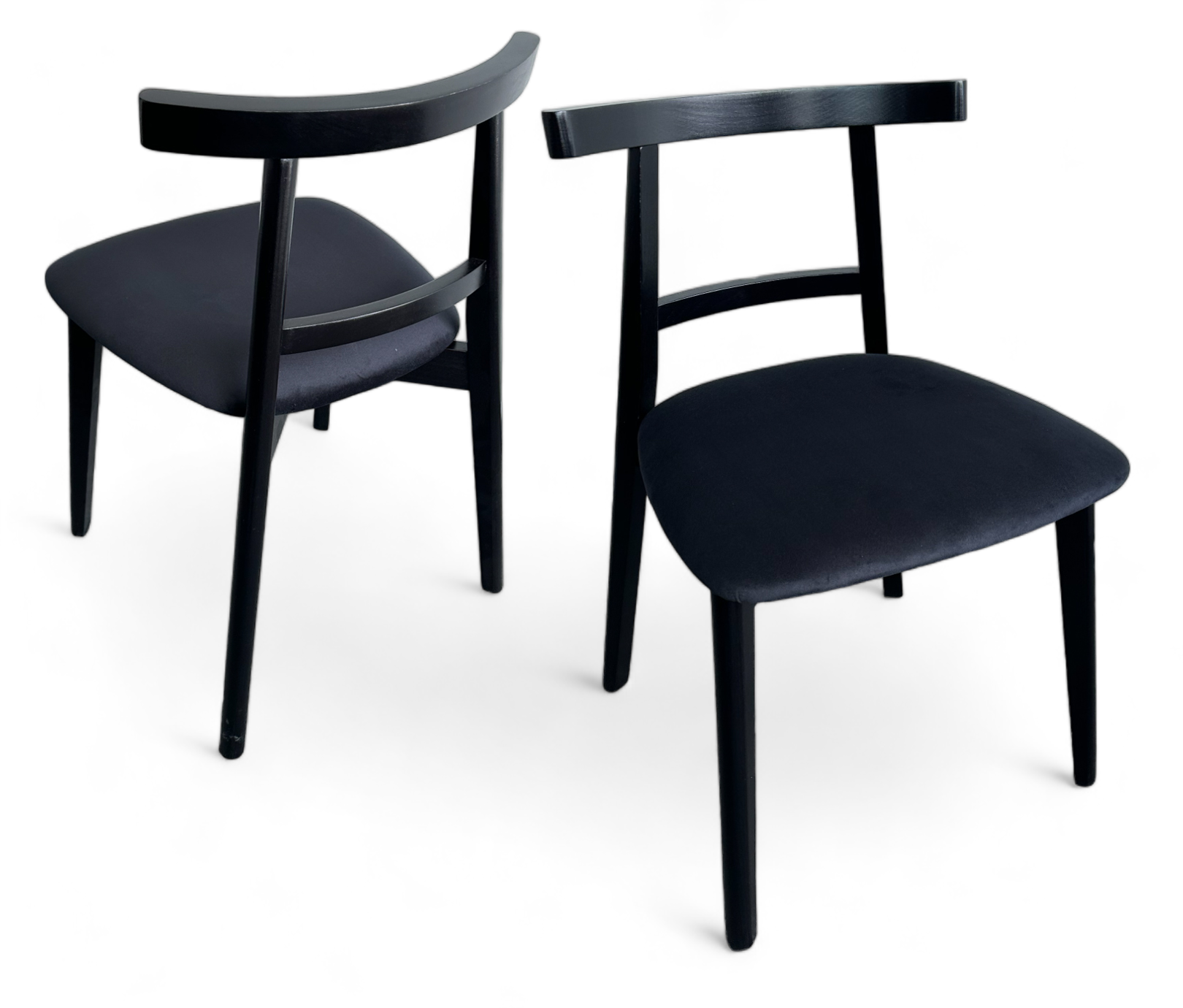 2x Krzesło Czarne Tapicerowane KT71 na Czarnym Drewnianym Stelażu