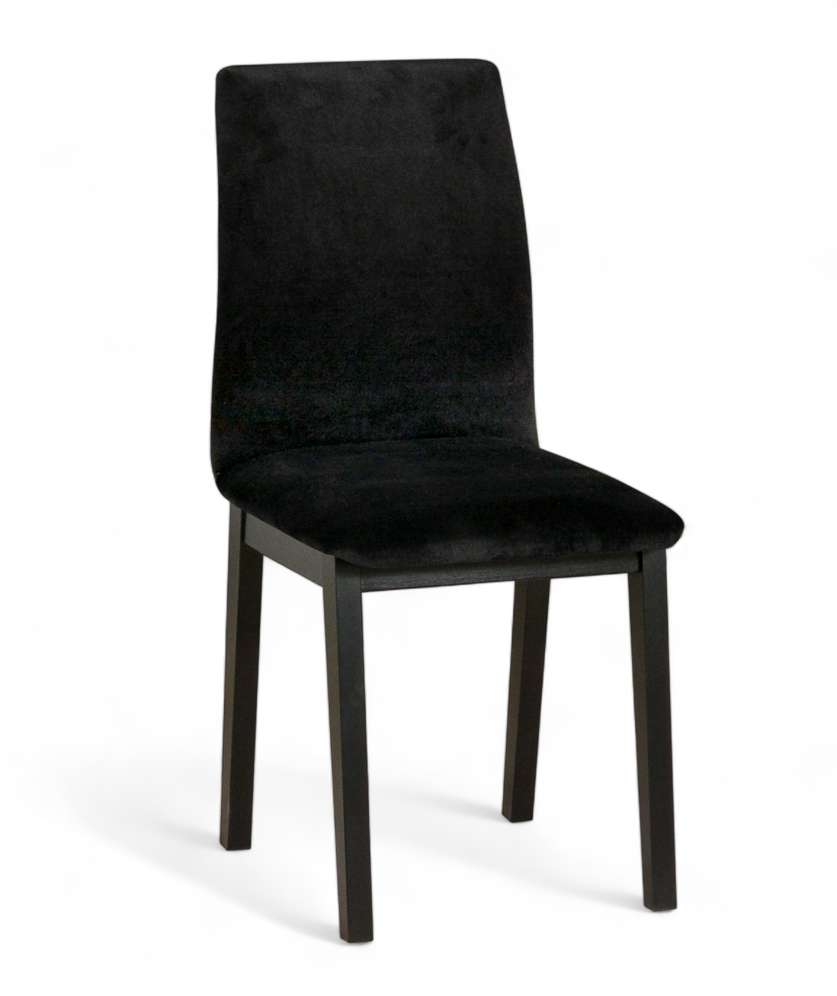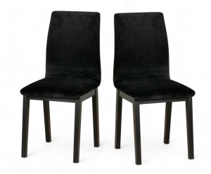 2x Krzesło Tapicerowane Czarną Tkaniną typu Plusz, Nogi drewniane czarne