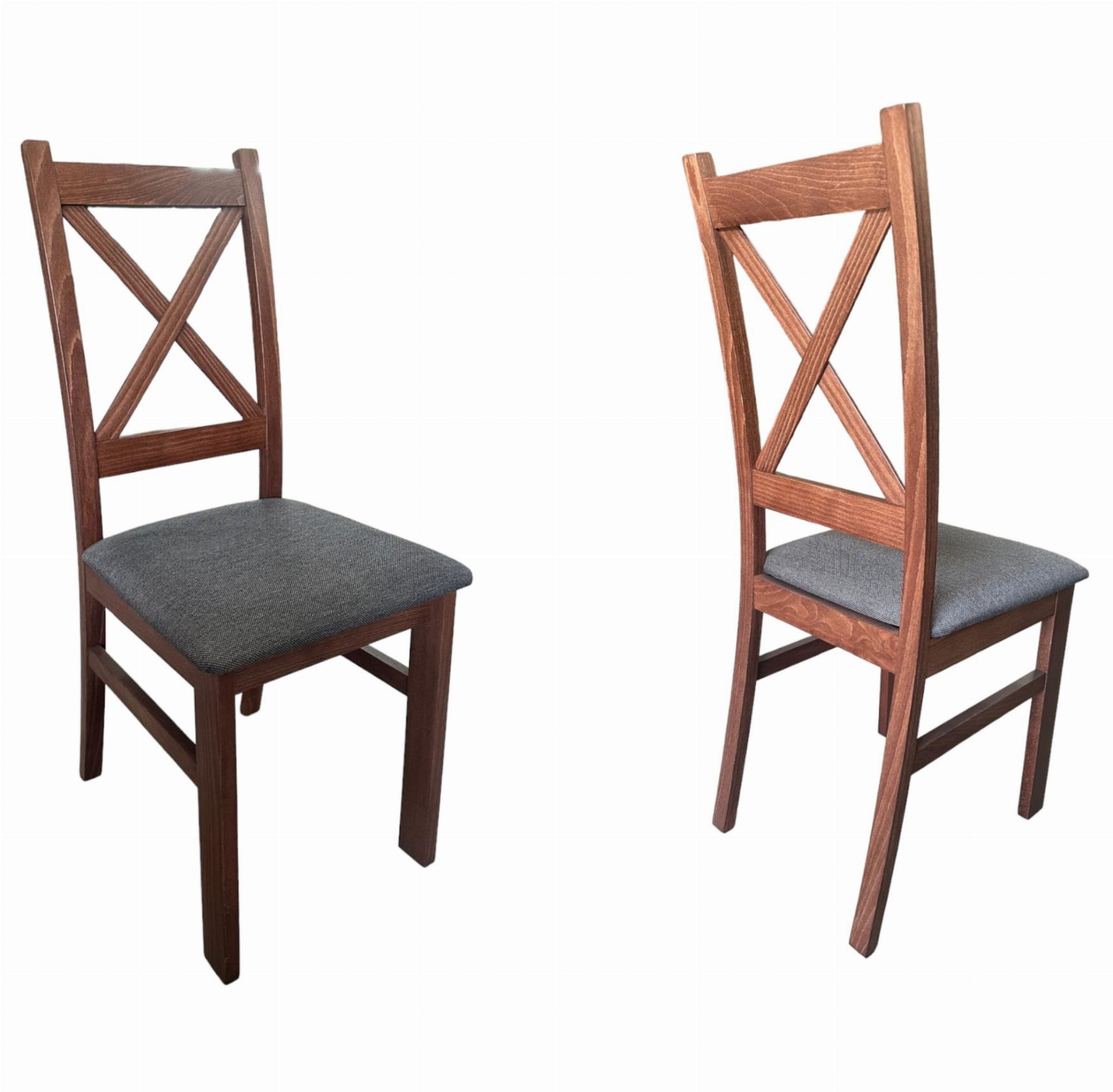 2x Krzesło drewniane Krzyżak Orzech + Ciemno szare siedzisko Inari 96