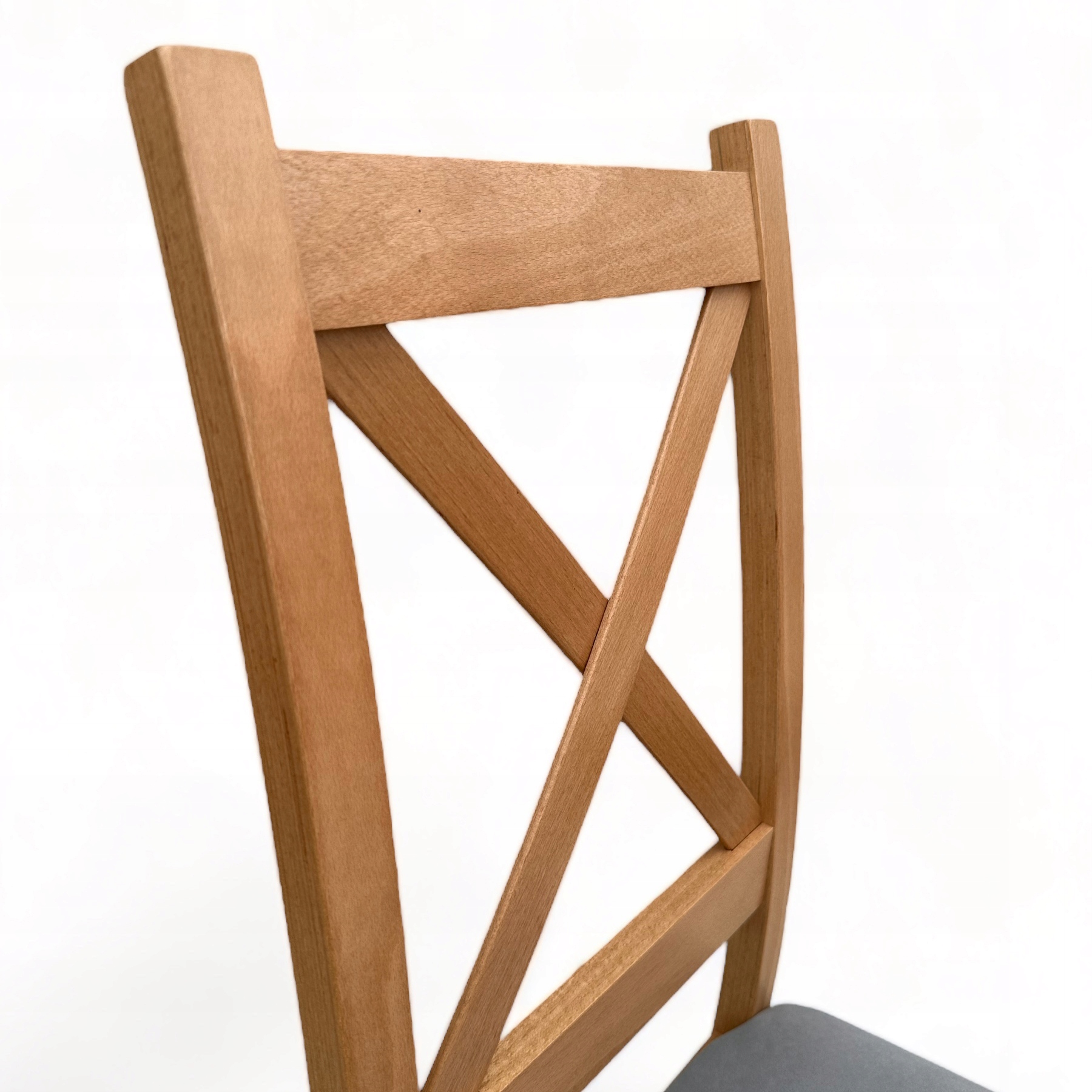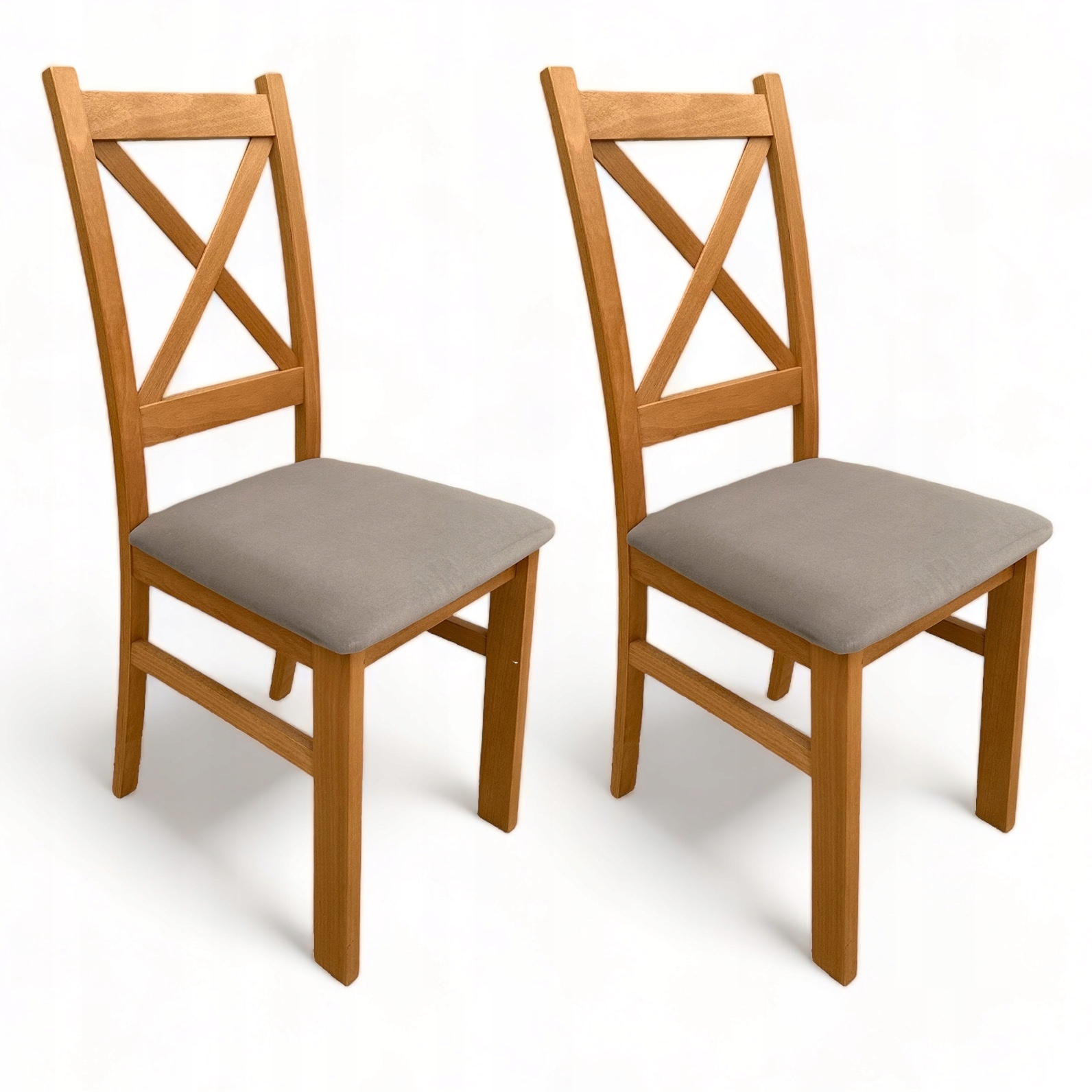 2x Krzesło Drewniane Krzyżak z tapicerowanym siedziskiem