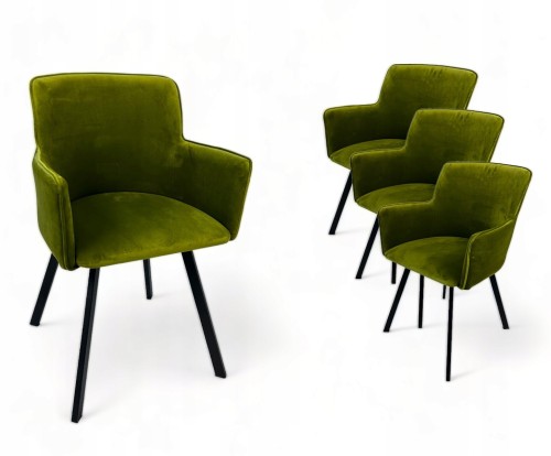 4x Krzesło Tapicerowane Fotelowe WIKI Czarne Nóżki + Zielony materiał