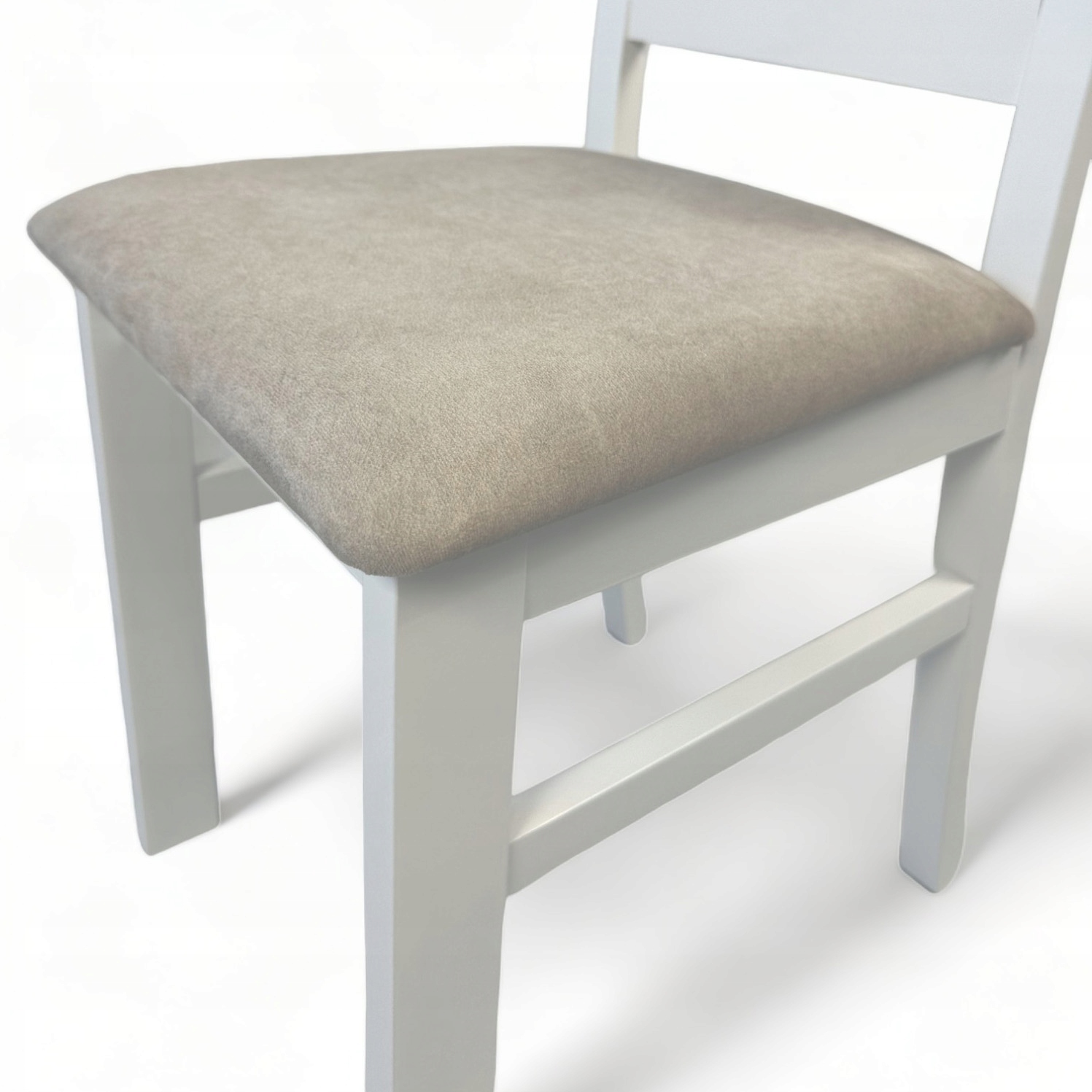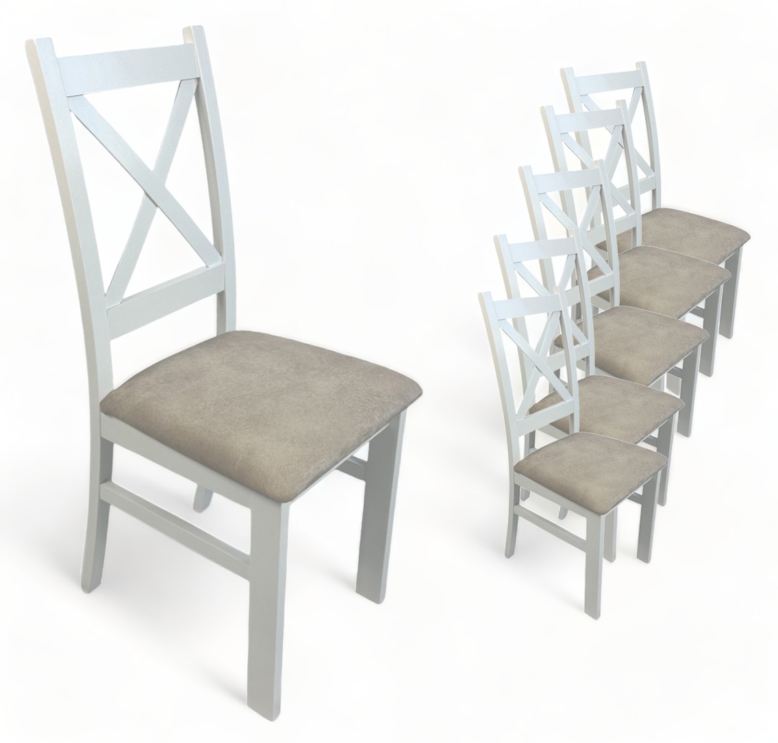 6x Krzesło Białe Drewniane Krzyżak z tapicerowanym siedziskiem Beż