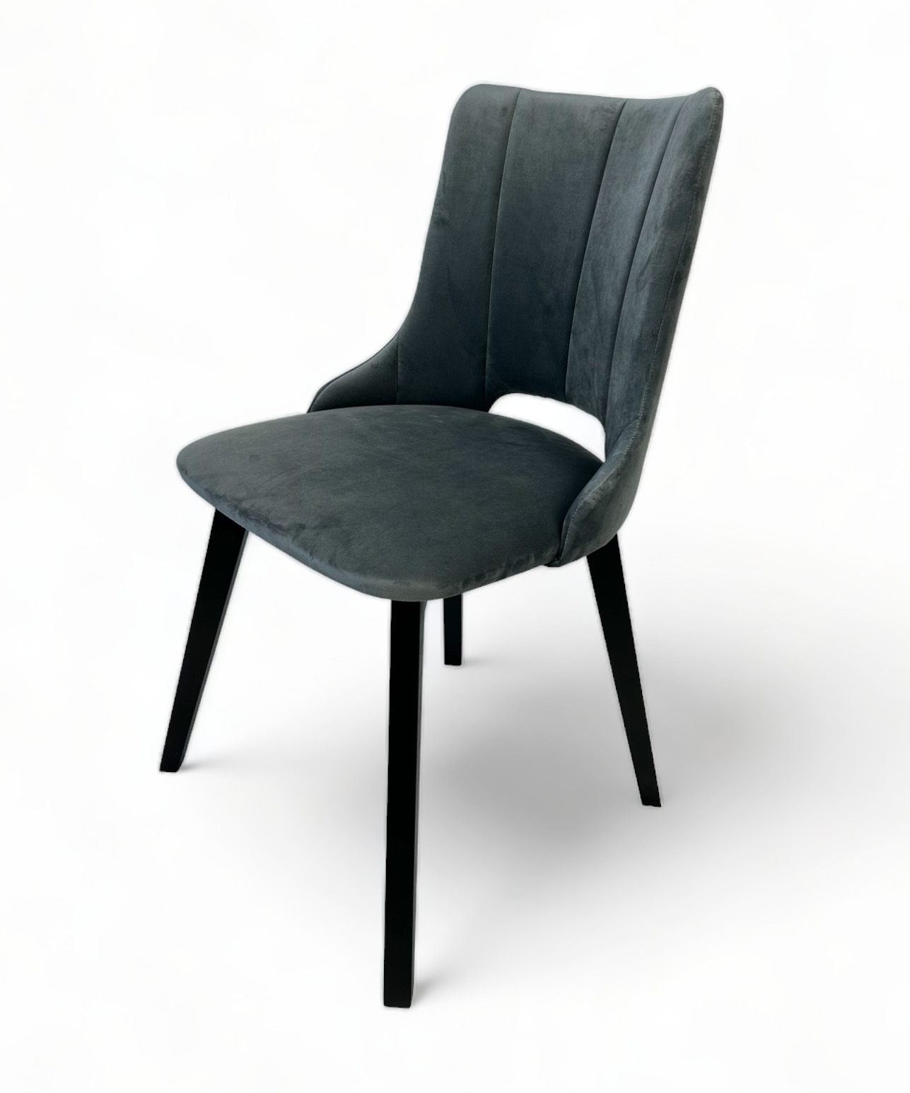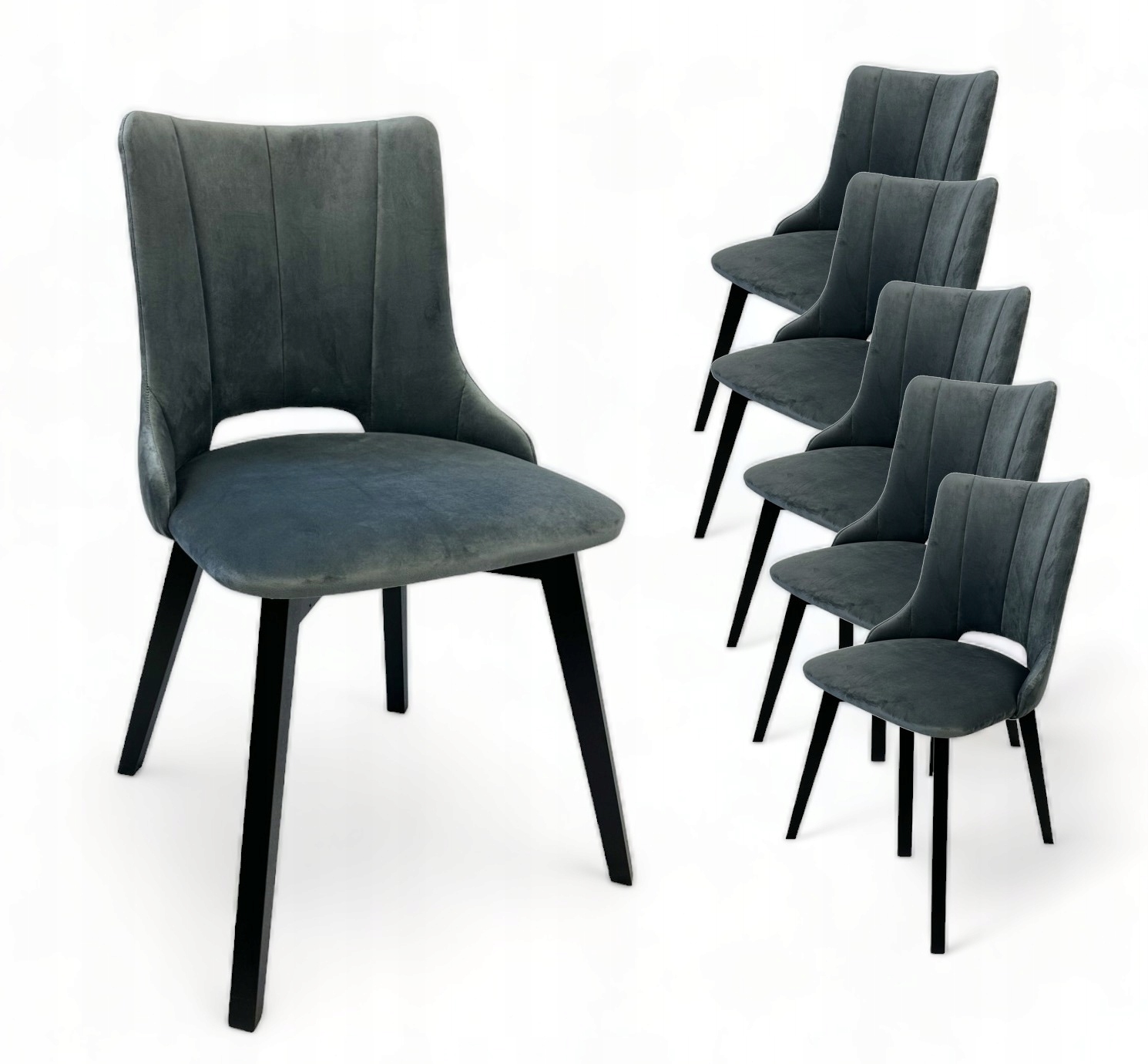 6x Krzesło Tapicerowane Fotelowe BELLA Czarne Nóżki + Szary Materiał Velvet