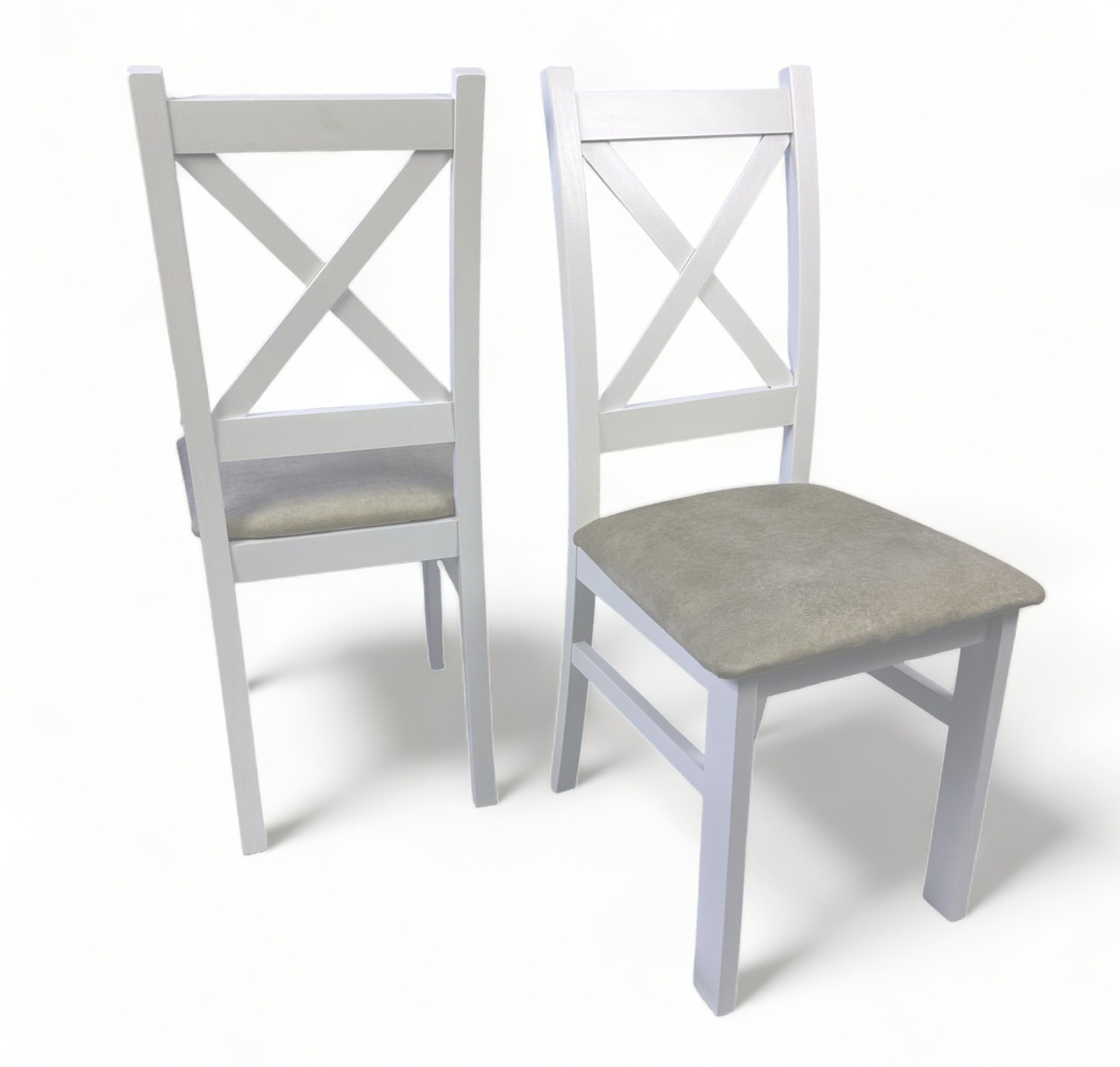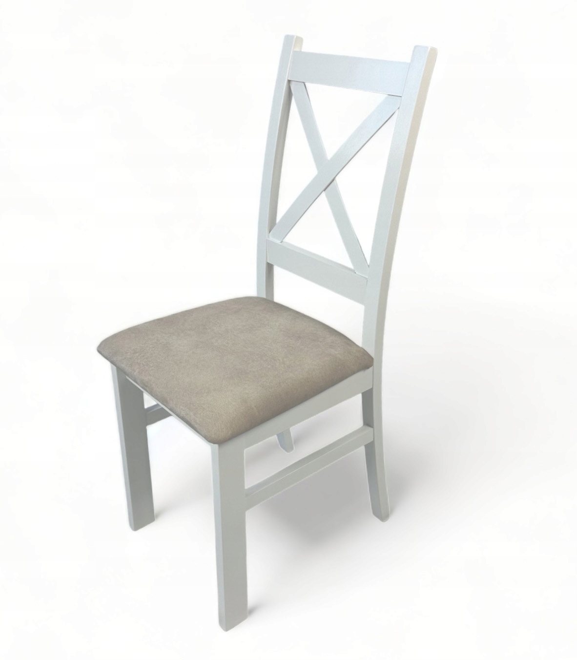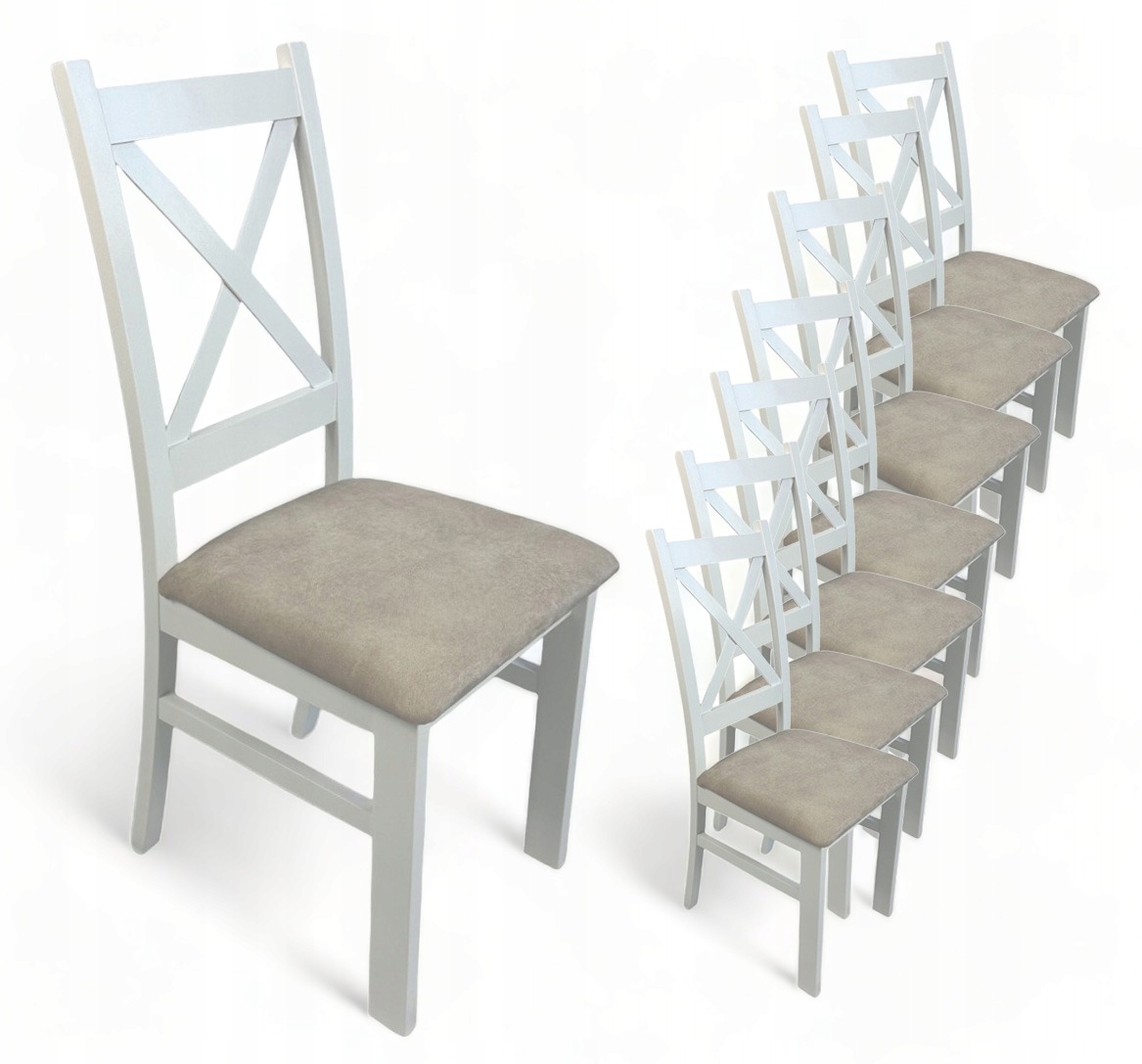 8x Krzesło Białe Drewniane Krzyżak z tapicerowanym siedziskiem Beż