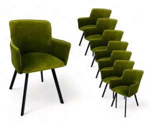 8x Krzesło Tapicerowane Fotelowe WIKI Czarne Nóżki + Zielony materiał