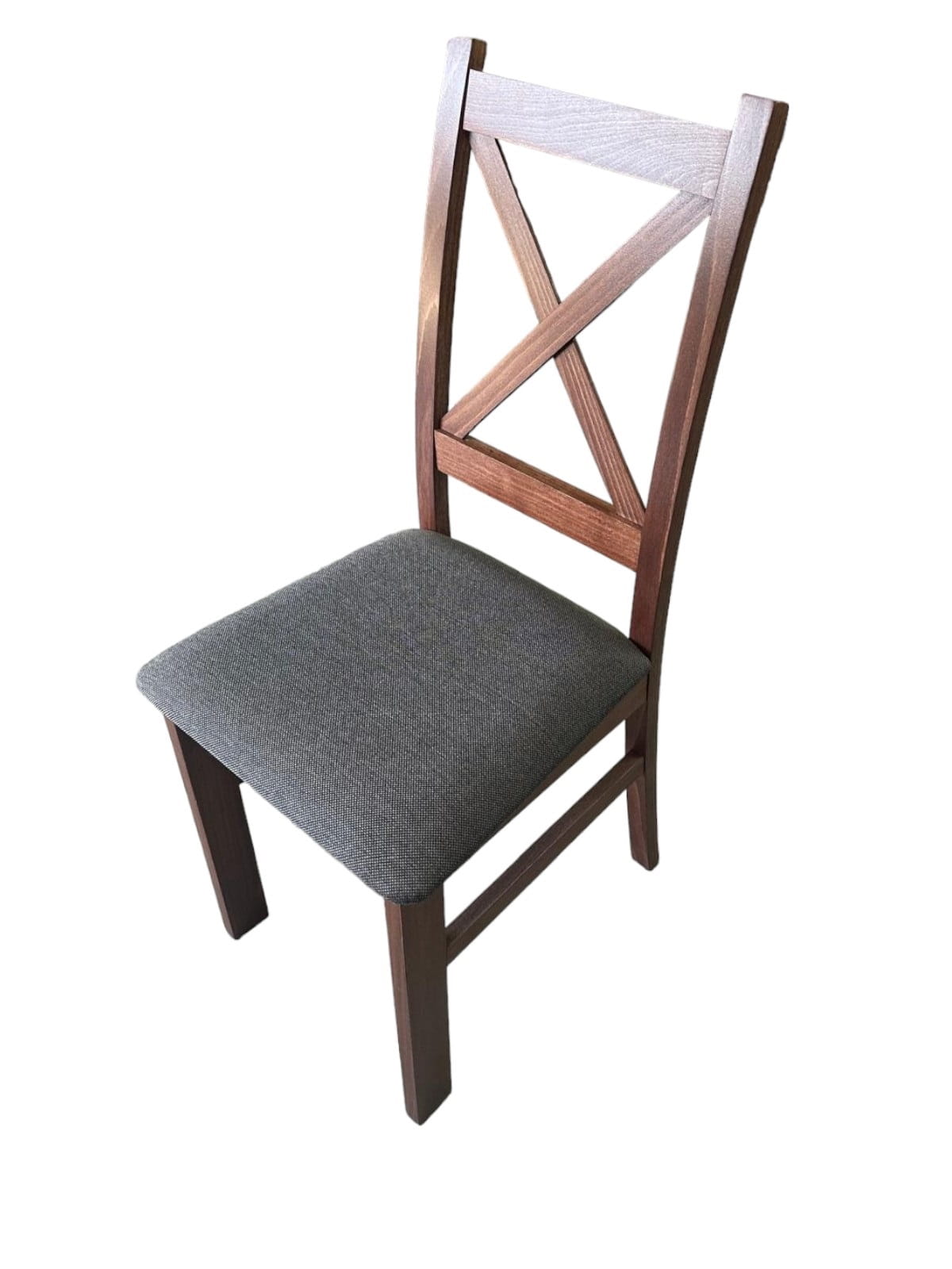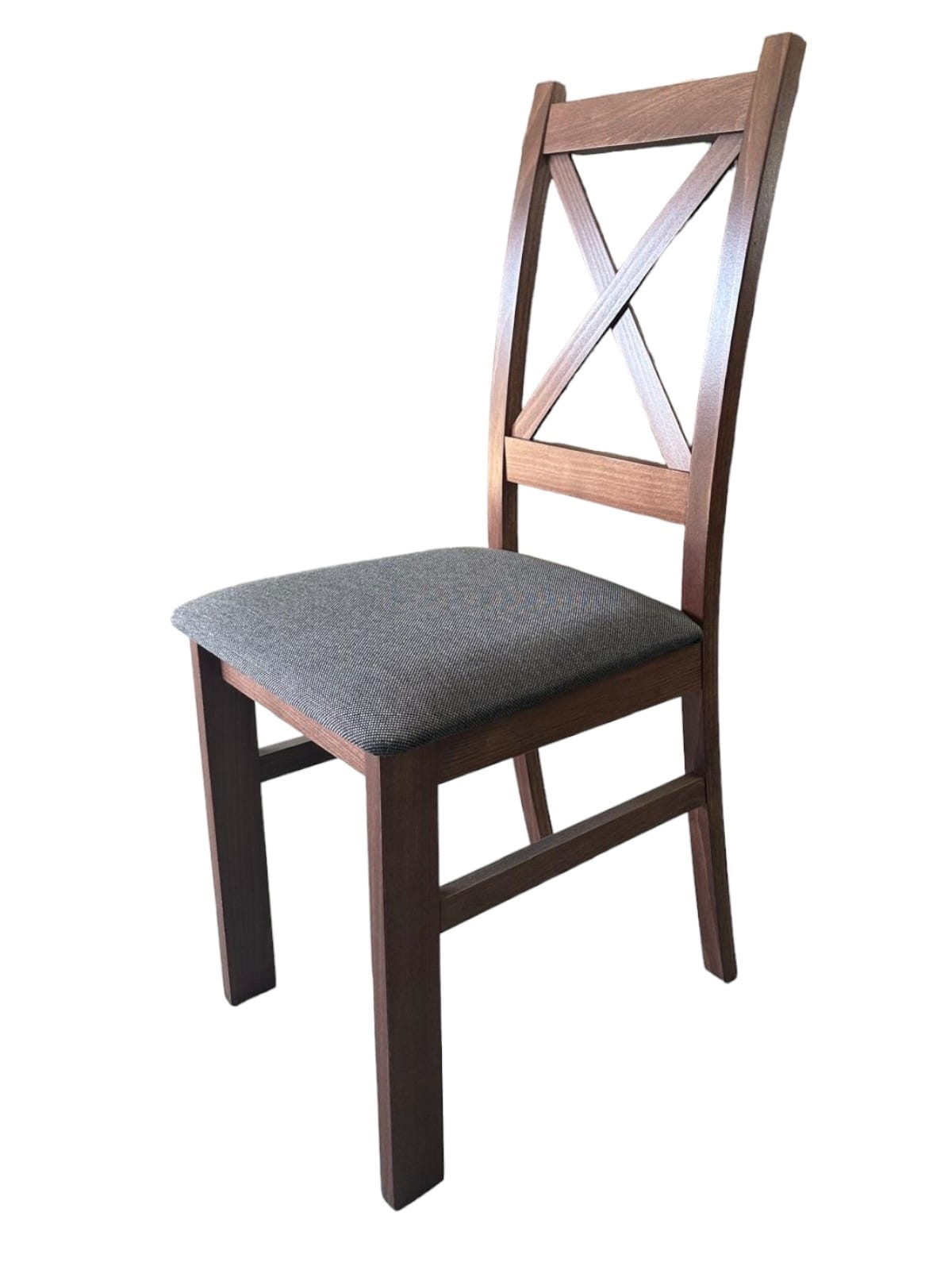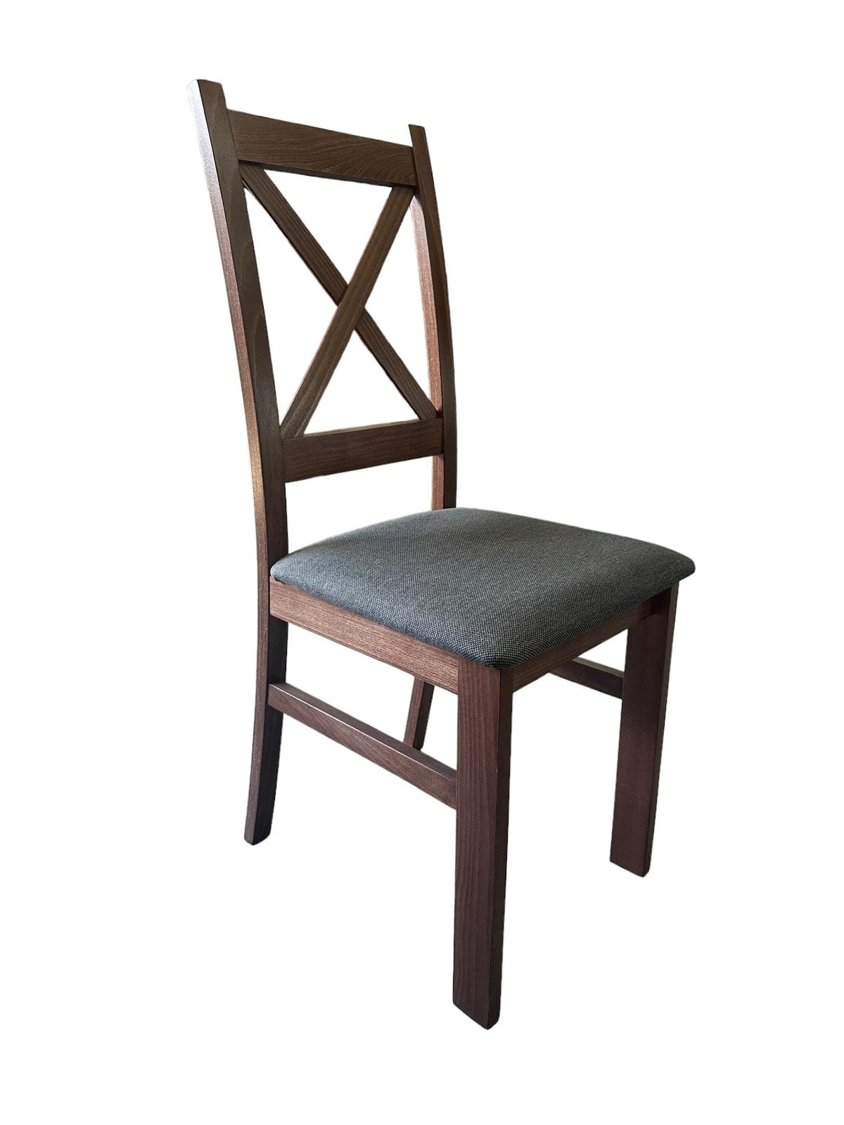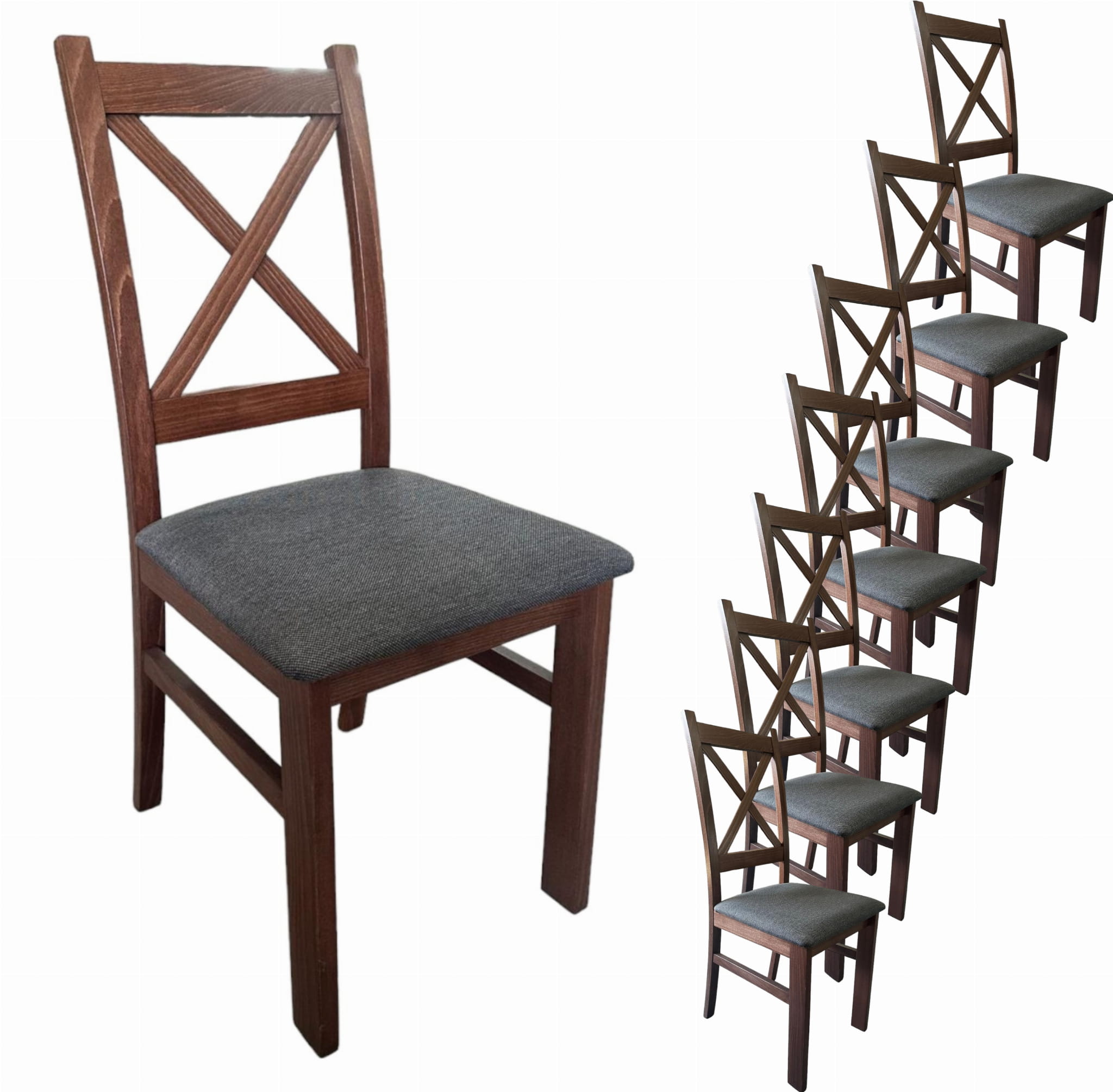 8x Krzesło drewniane Krzyżak Orzech + Ciemno szare siedzisko Inari 96