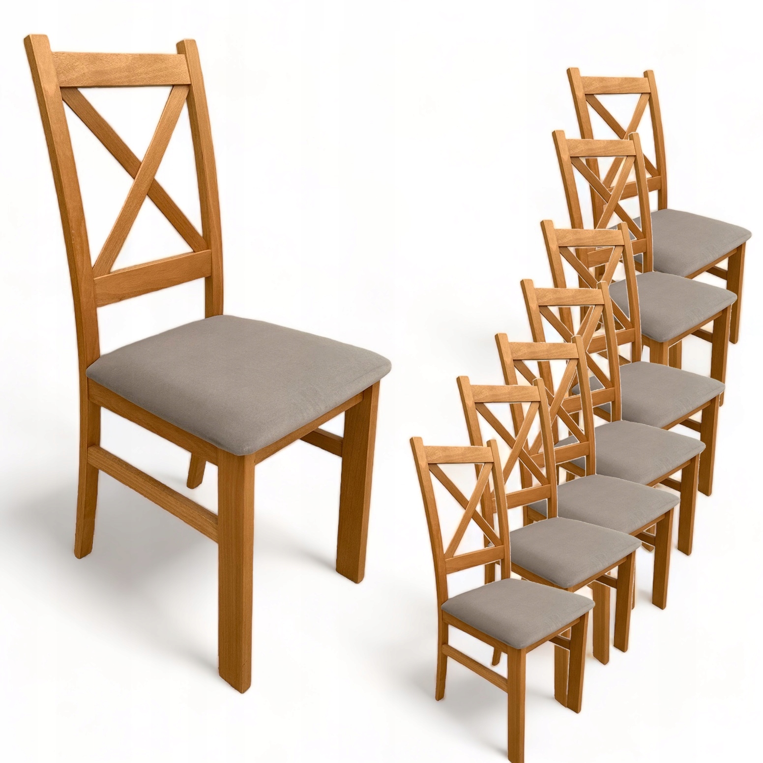 8x Krzesło Drewniane Krzyżak z tapicerowanym siedziskiem