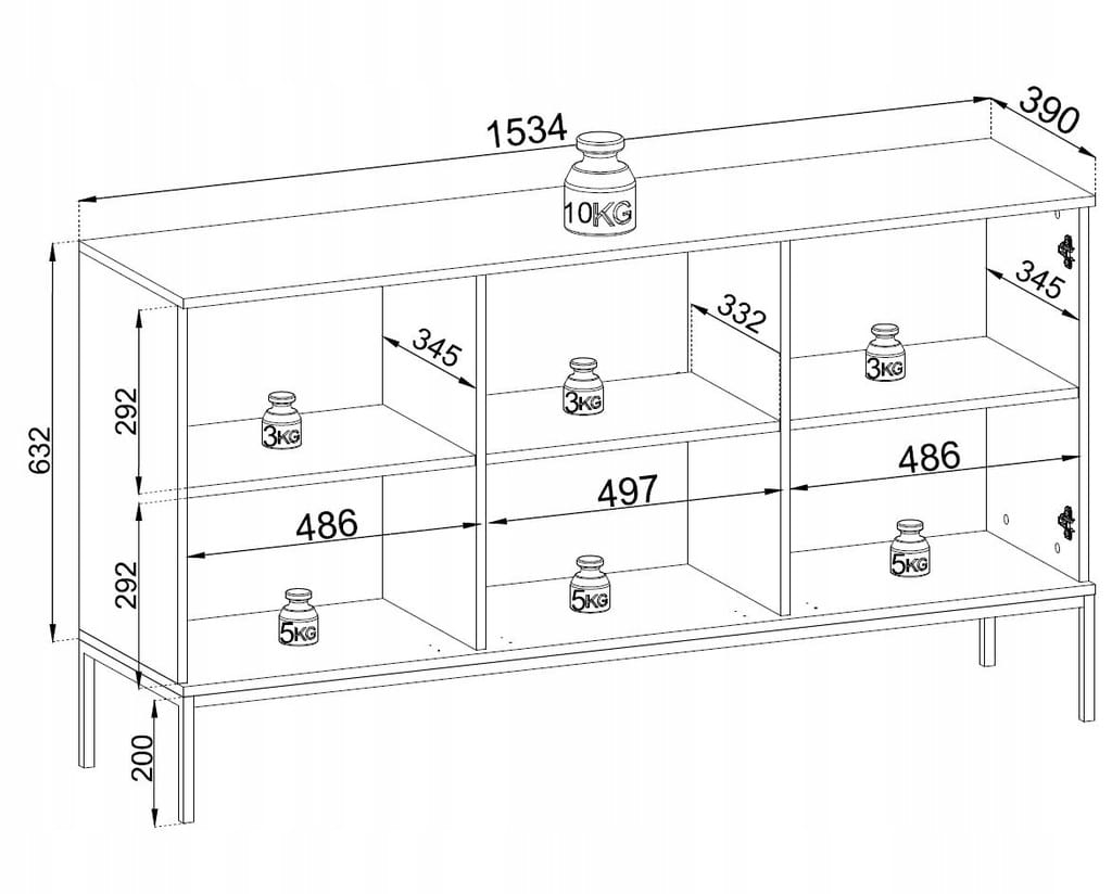 - Korpus: płyta laminowana 16 mm; obrzeże ABS 0,5 mm;