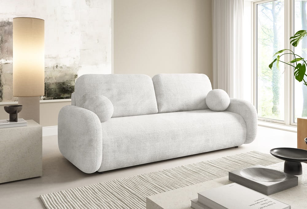 Kanapa LEON rozkładana funkcja spania kremowa sofa