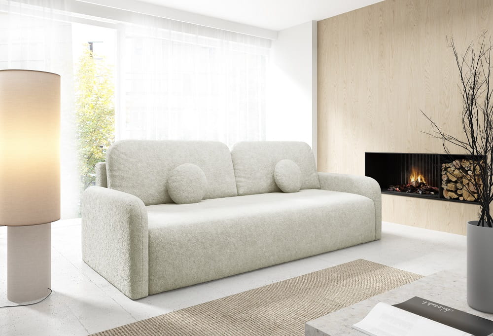 Kanapa RAVION rozkładana funkcja spania KREMOWA sofa