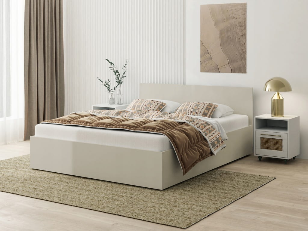 Łóżko wzmocnione poprzez poprzeczne podpory, tworzące dwie funkcjonalne przegrody wewnątrz łóżka.