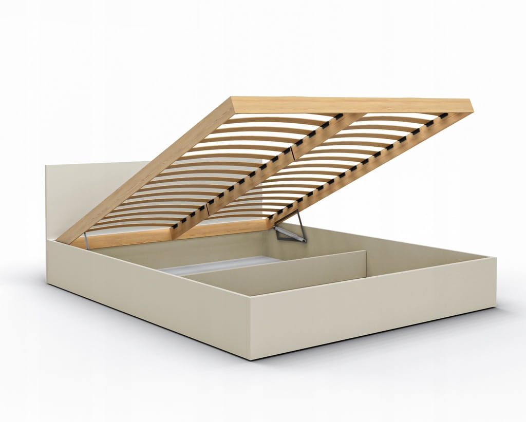 - Łóżko wzmocnione poprzez 3 poprzeczne podpory tworzące dwie funkcjonalne przegrody wewnątrz łóżka