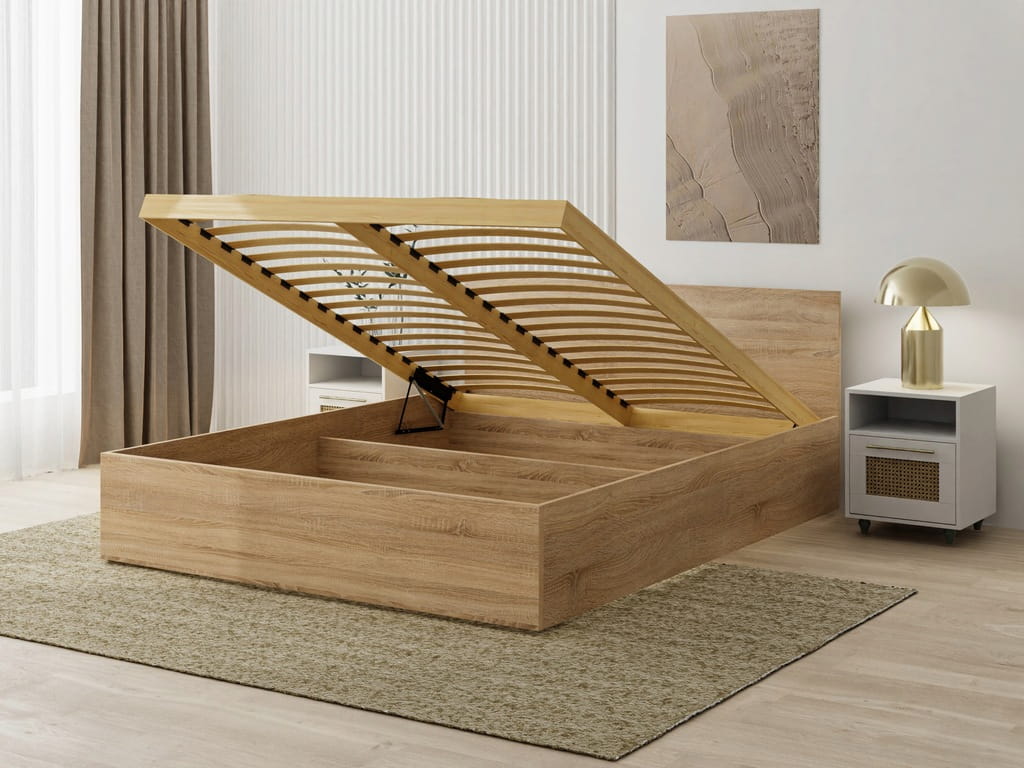 - Łóżko wzmocnione poprzez 3 poprzeczne podpory tworzące dwie funkcjonalne przegrody wewnątrz łóżka