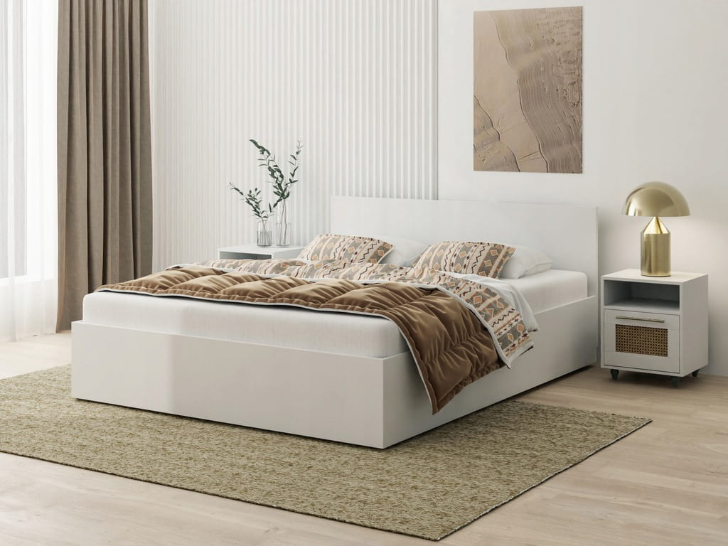 Łóżko białe z materacem łóżko podwójne sypialniane szerokość 120 cm