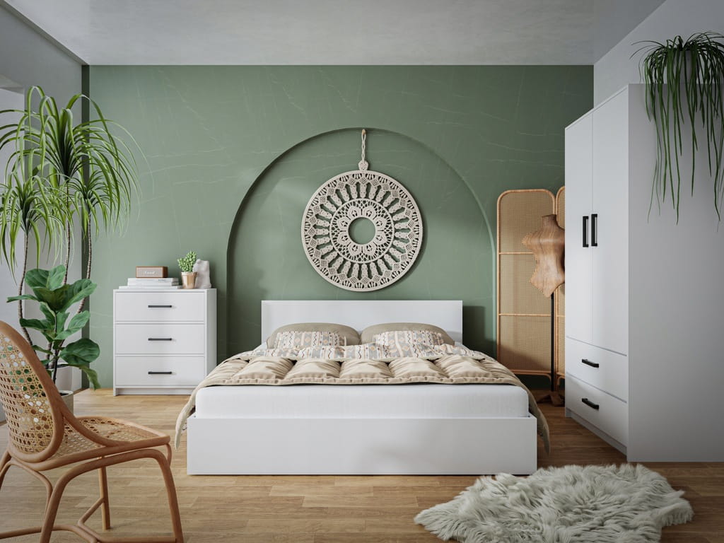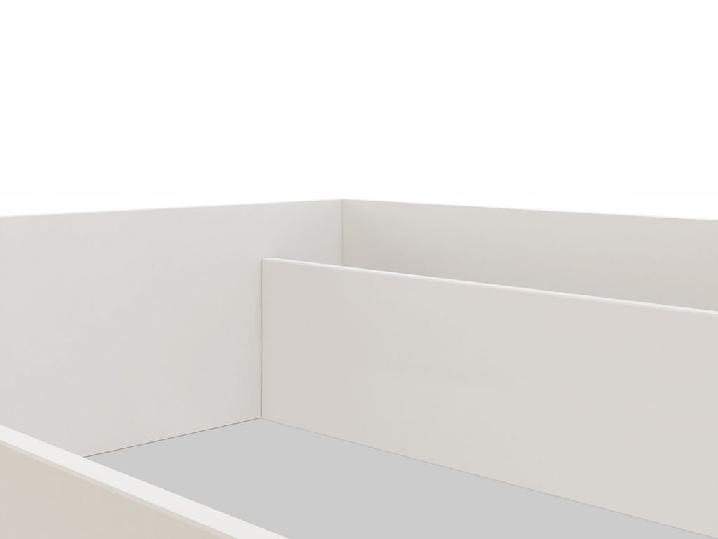 - Łóżko wzmocnione poprzez 3 poprzeczne podpory tworzące dwie funkcjonalne przegrody wewnątrz łóżka