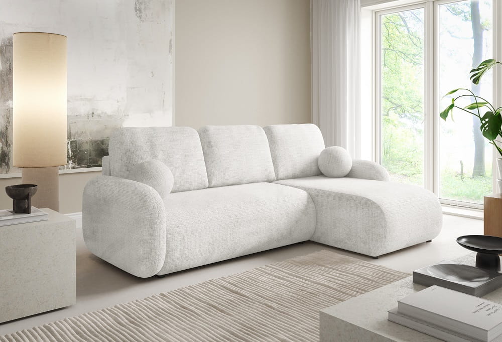Narożnik kremowy COMOS rozkładany wygodny poduszki funkcja spania