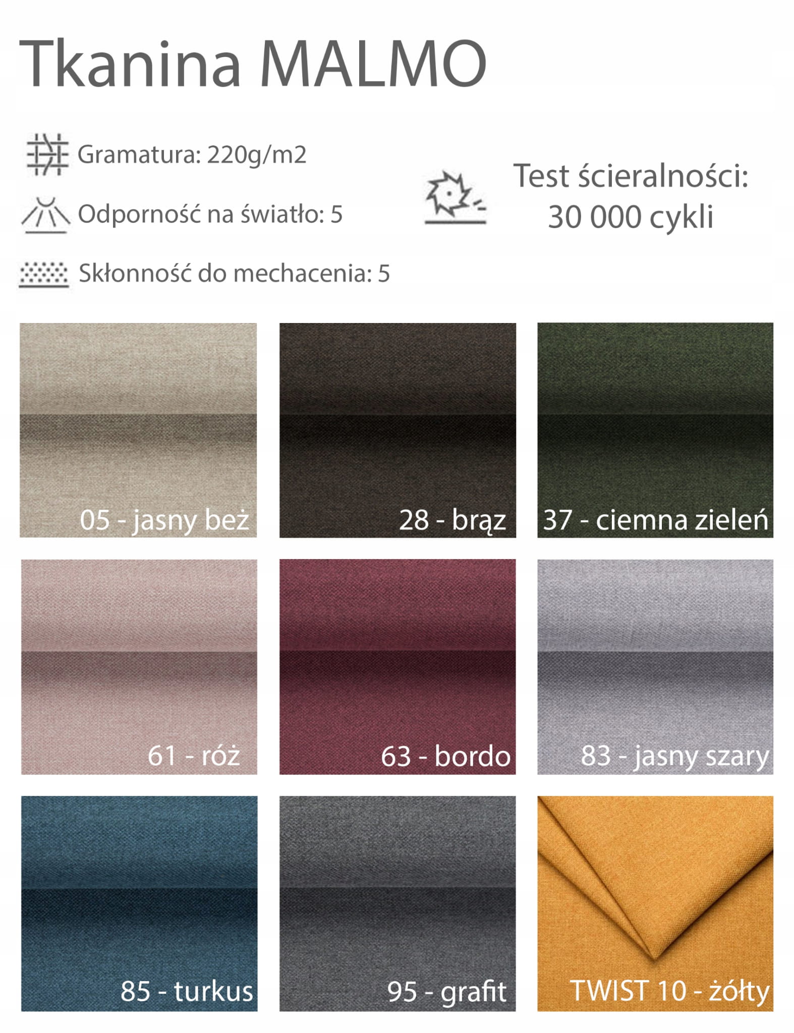 Podczas składania zamówienia prosimy dodać w polu "dodatkowe informacje dla sprzedającego" informację o wybranej tkaninie. Przyśpieszy to czas realizacji zamówienia. Jeśli nie są Państwo zdecydowani proszę o wiadomość a nasi specjaliści dobiorą dla Państwa pasujący styl.
