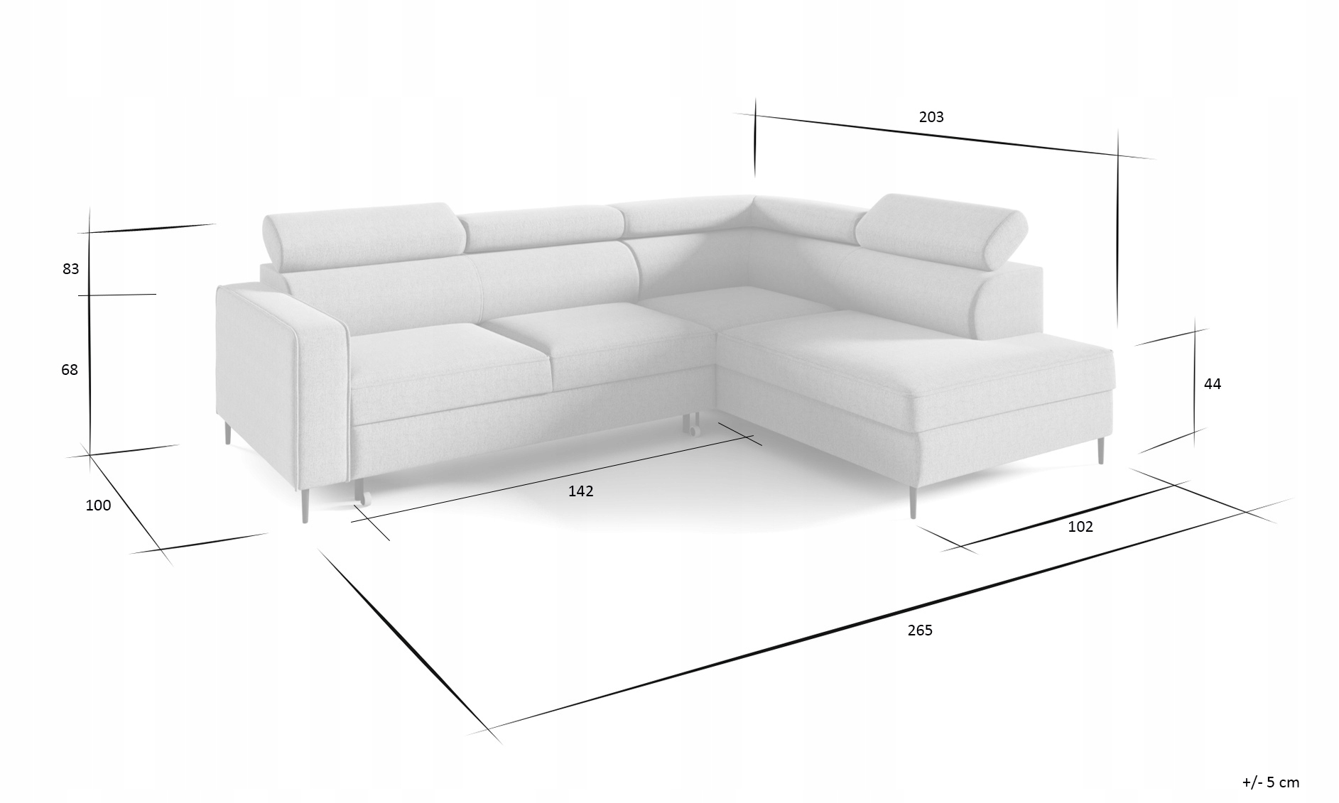 - Tył mebla tapicerowany: Tak