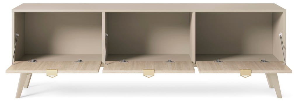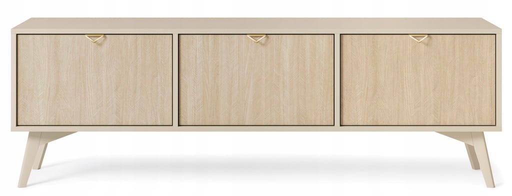 STOLIK RTV BEŻ PIASKOWY JODEŁKA SCANDI 158x52x38 cm, drewniane nogi, FORESA