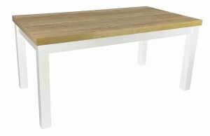 Solidny stół rozkładany R-7 80x130/170 biały / blat dąb Halifax + nogi drewniane