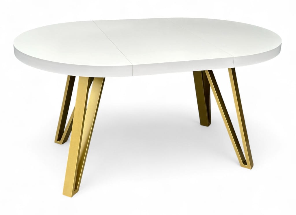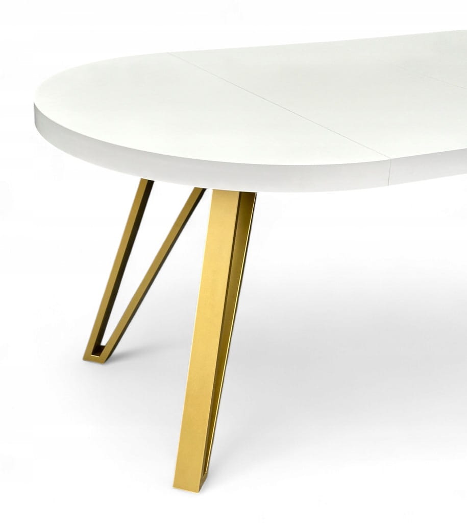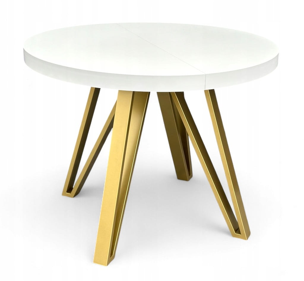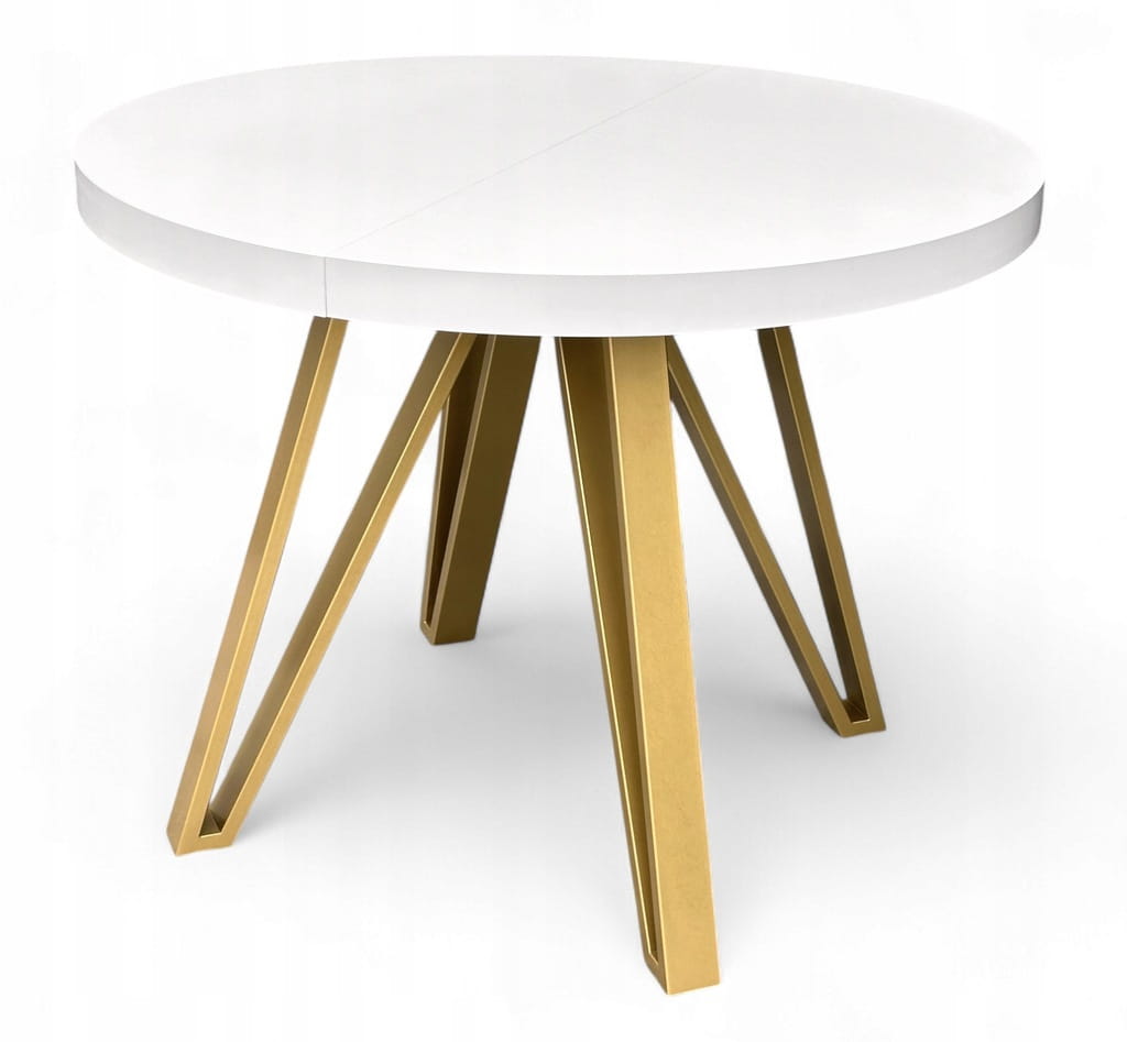 Stół BIAŁY PÓŁMAT Okrągły Ø110 rozkładany do 210 cm + ZŁOTE NOGI METALOWE
