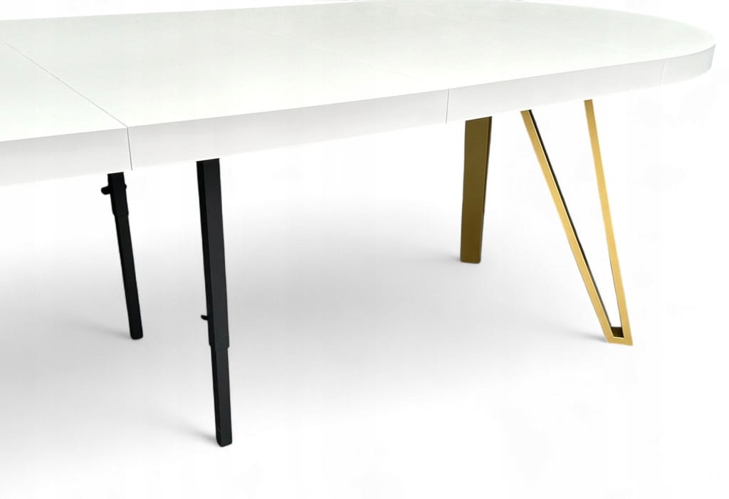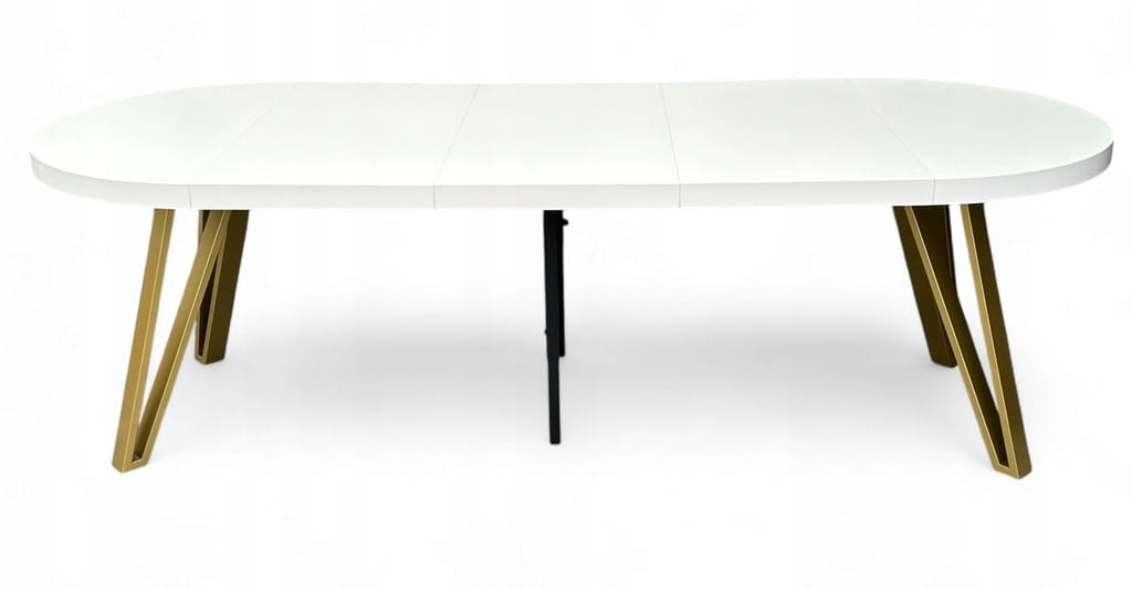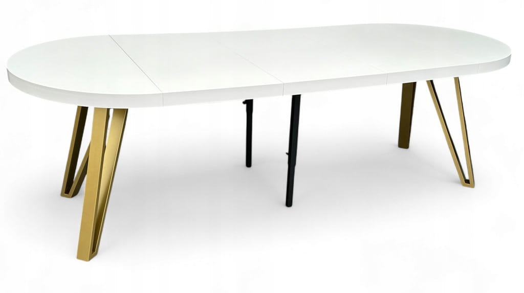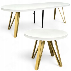 Stół BIAŁY PÓŁMAT Okrągły Ø110 rozkładany do 310 cm + ZŁOTE NOGI METALOWE