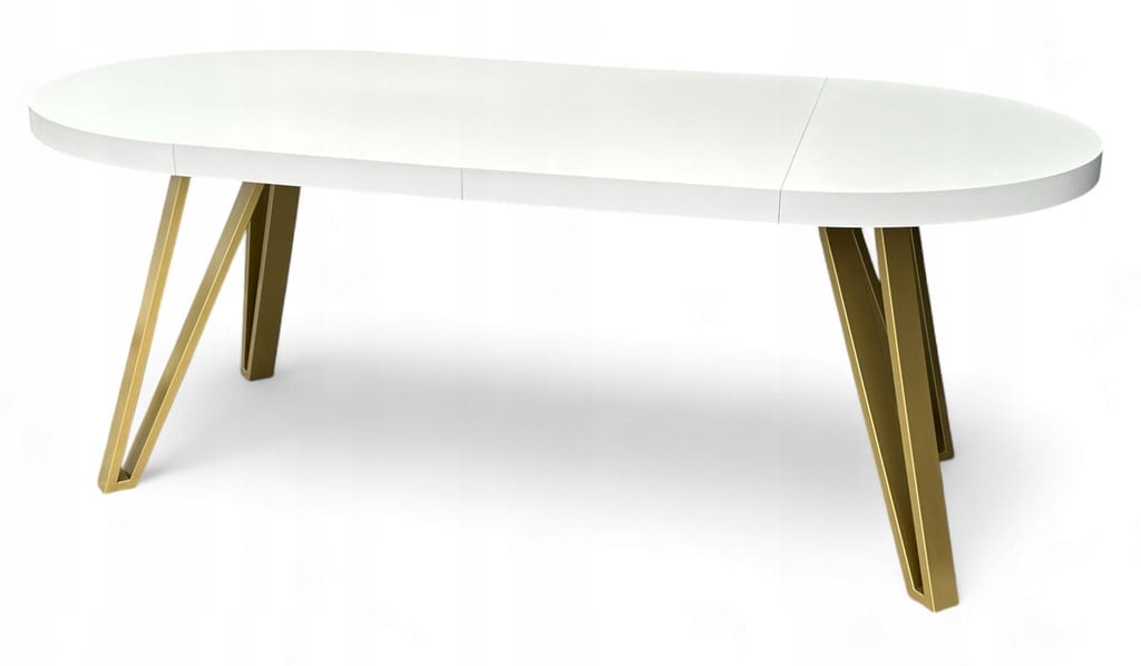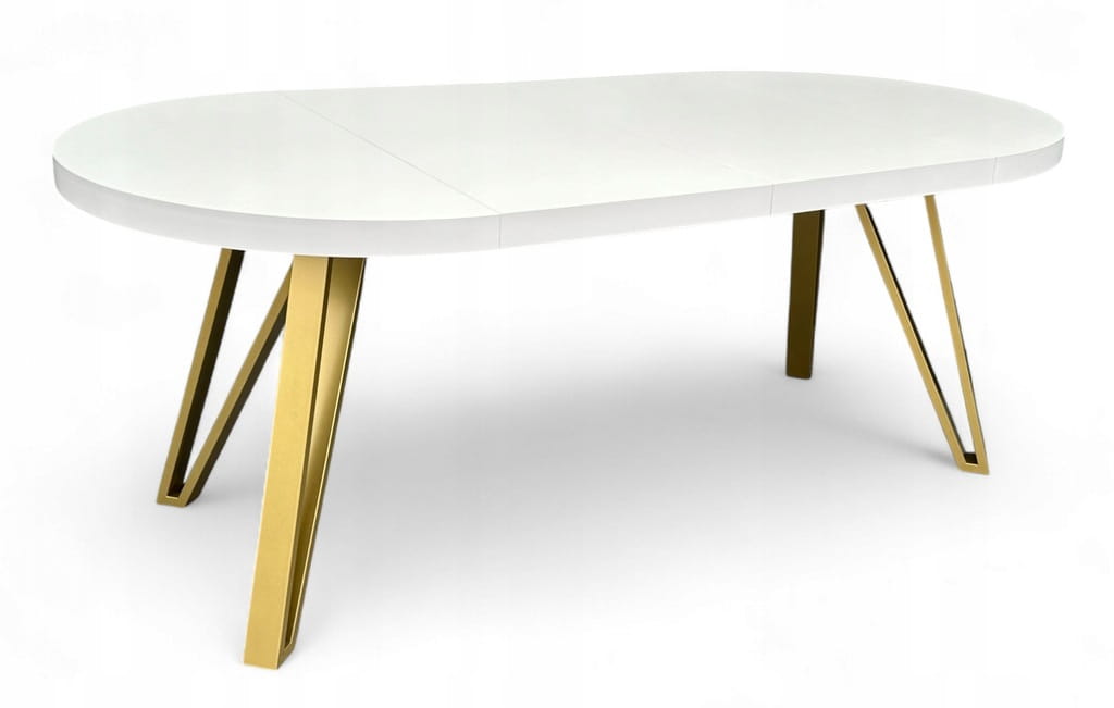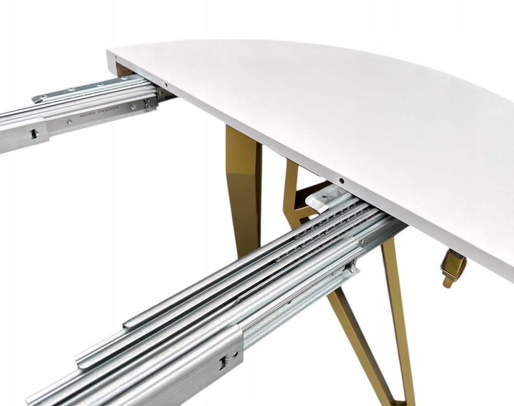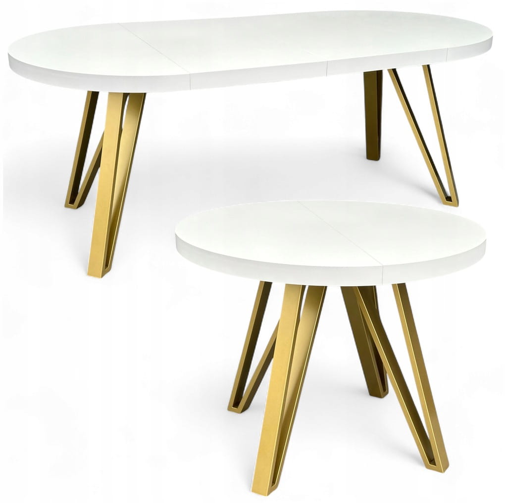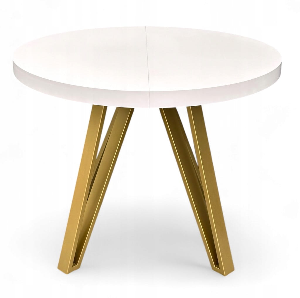 Stół BIAŁY PÓŁMAT Okrągły Ø90 rozkładany do 190 cm + ZŁOTE NOGI METALOWE