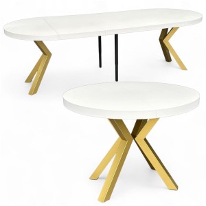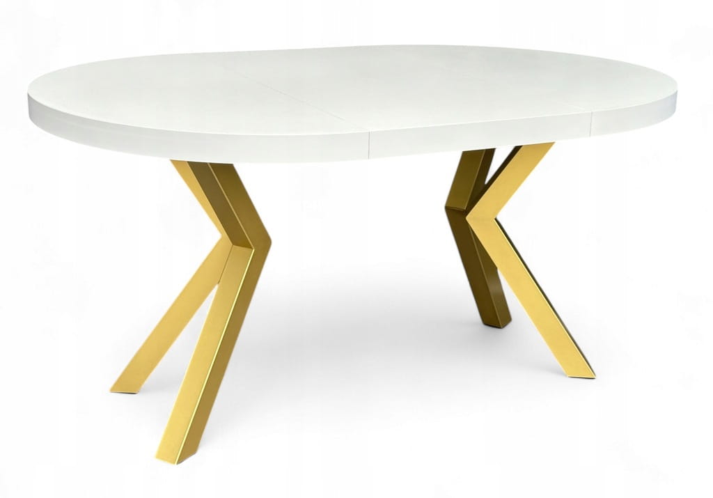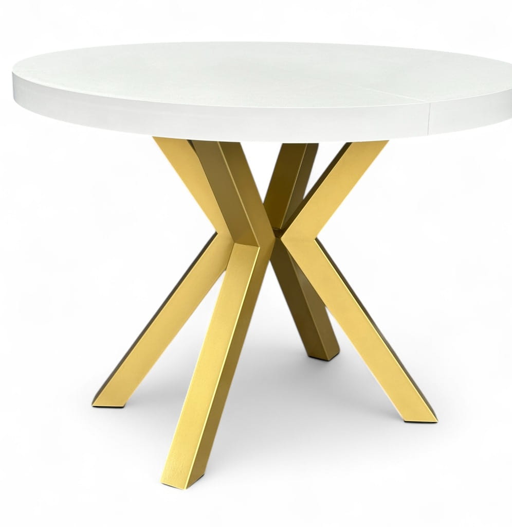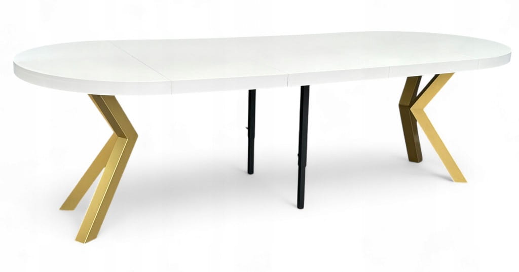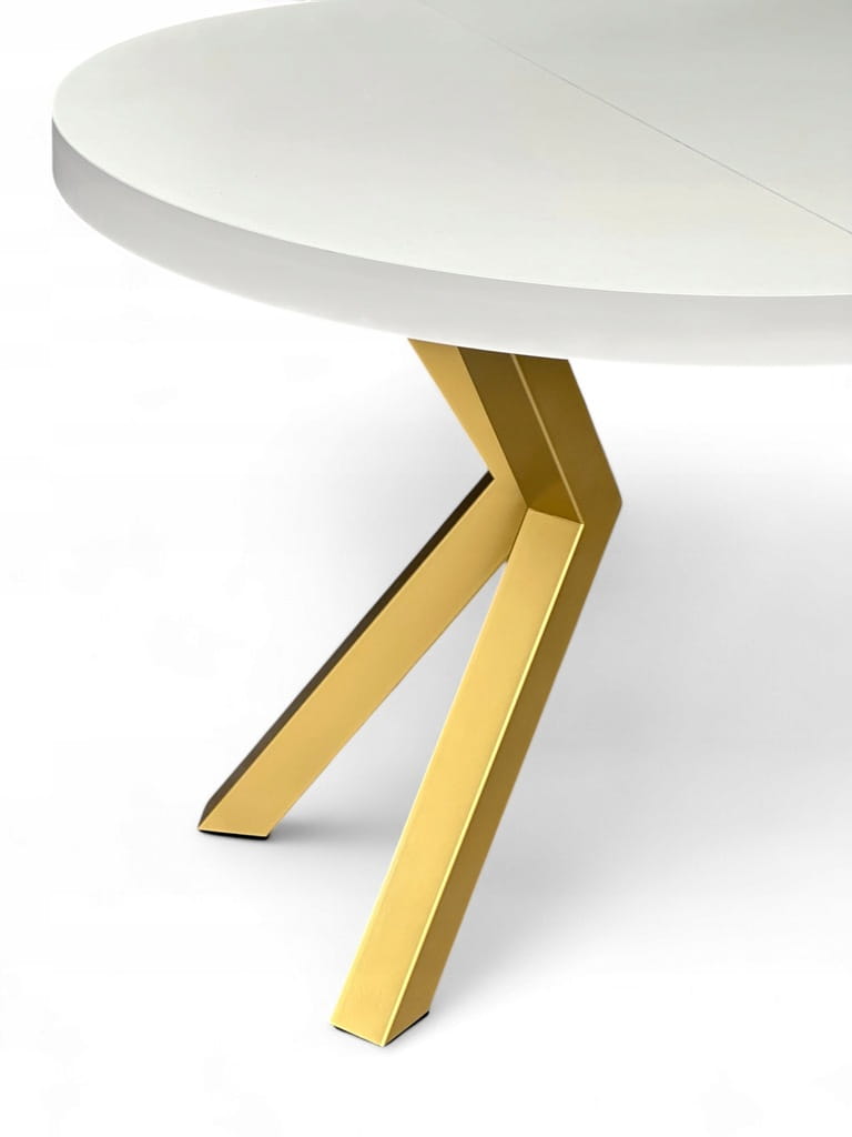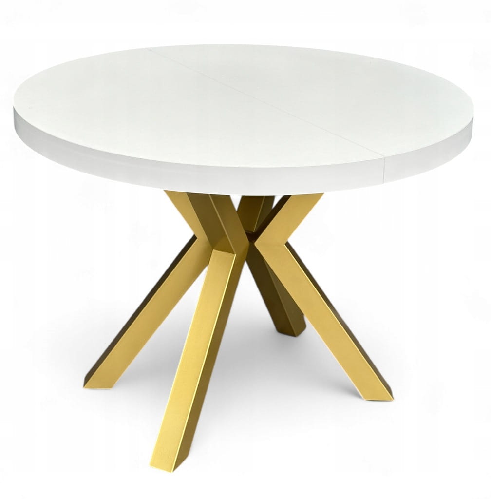 Stół BIAŁY duży okrągły Ø110 rozsuwany do 310 cm + ZŁOTE NOGI X METALOWE