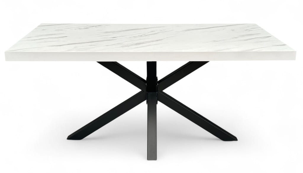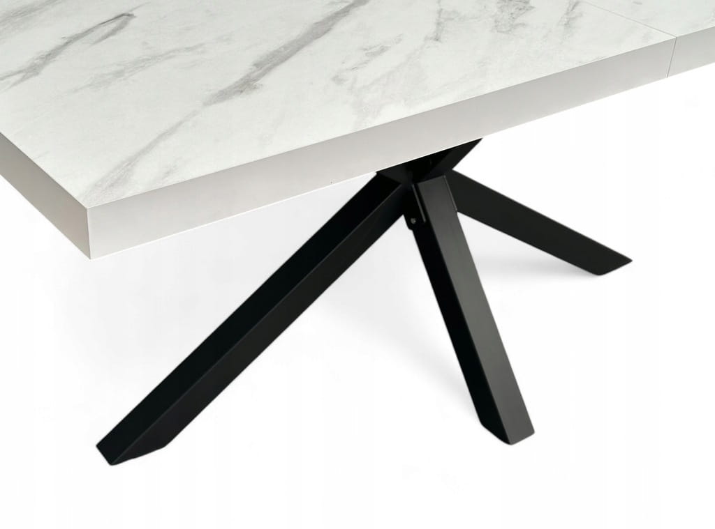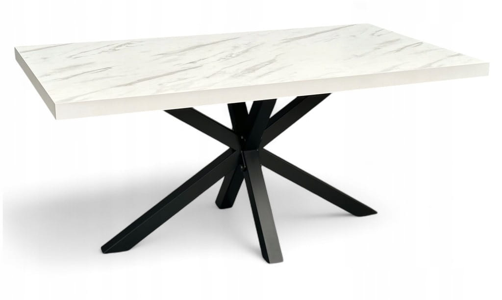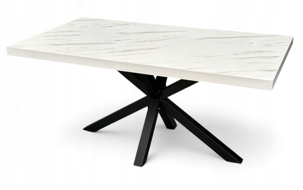 Stół Czarny Metalowy Pająk z blatem Biały Marmur 80x160 cm nierozkładany