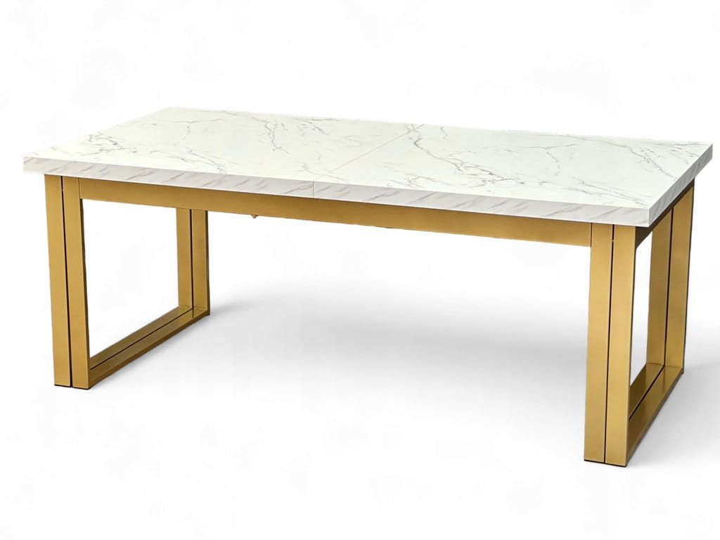 Stół Duży Złoty + Marmur Biały 100x200 rozkładany do 400 cm Metalowe Nogi