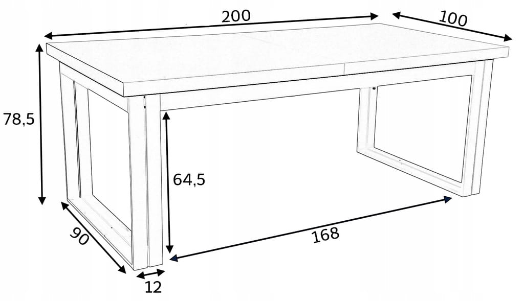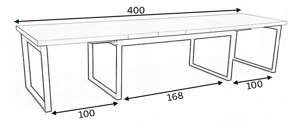 Stół rozkładany na podwójnych nogach metalowych 100x200 + 4x50 cm