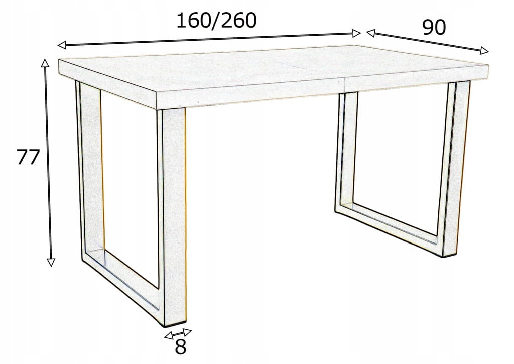 Stół rozkładany 90x160/260 cm na metalowych nogach do salonu lub jadalni