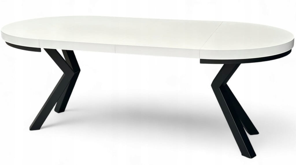 Stół biały okrągły rozkładany Ø110/210 cm nogi X czarne + maskownica