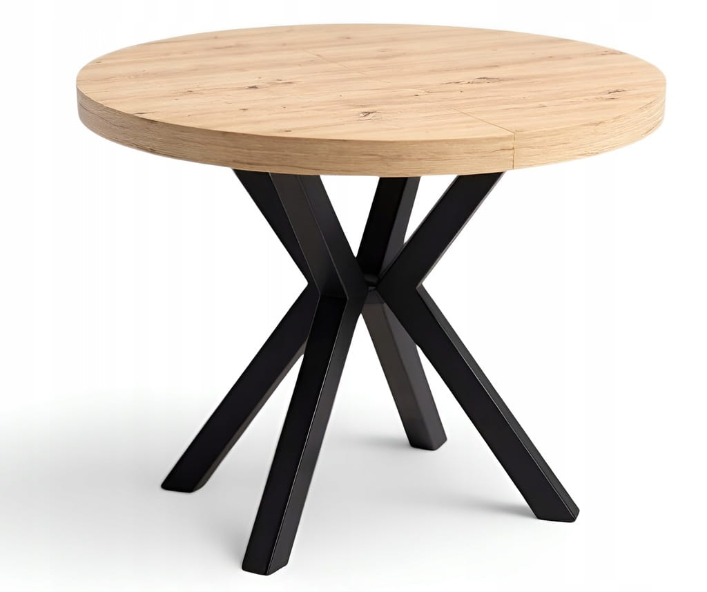 Stół duży okrągły Dąb Artisan Ø100 rozkładany do 300 cm Nogi Metal X Czarne
