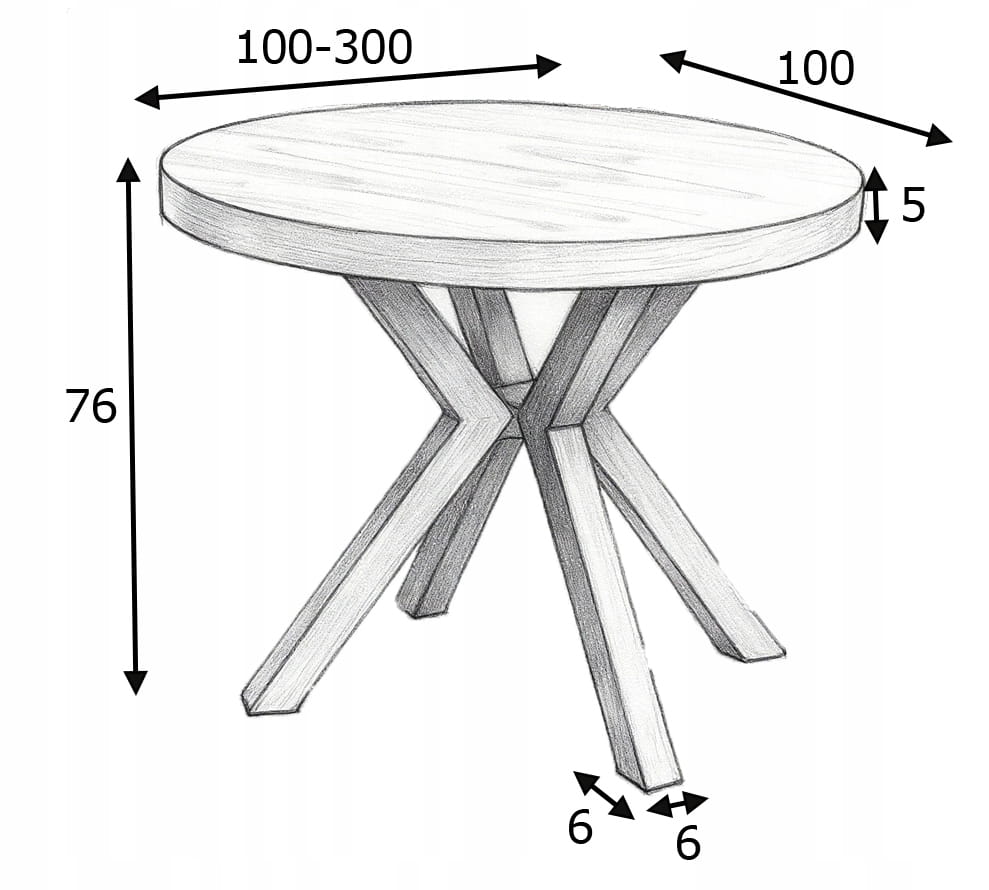 Solidny stół rozkładany RO-7 Ø100/300 cm z nogami X