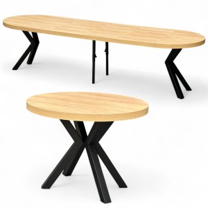 Stół duży okrągły Dąb HIKORA Ø110 rozkładany do 310 cm Nogi Czarne Metal X