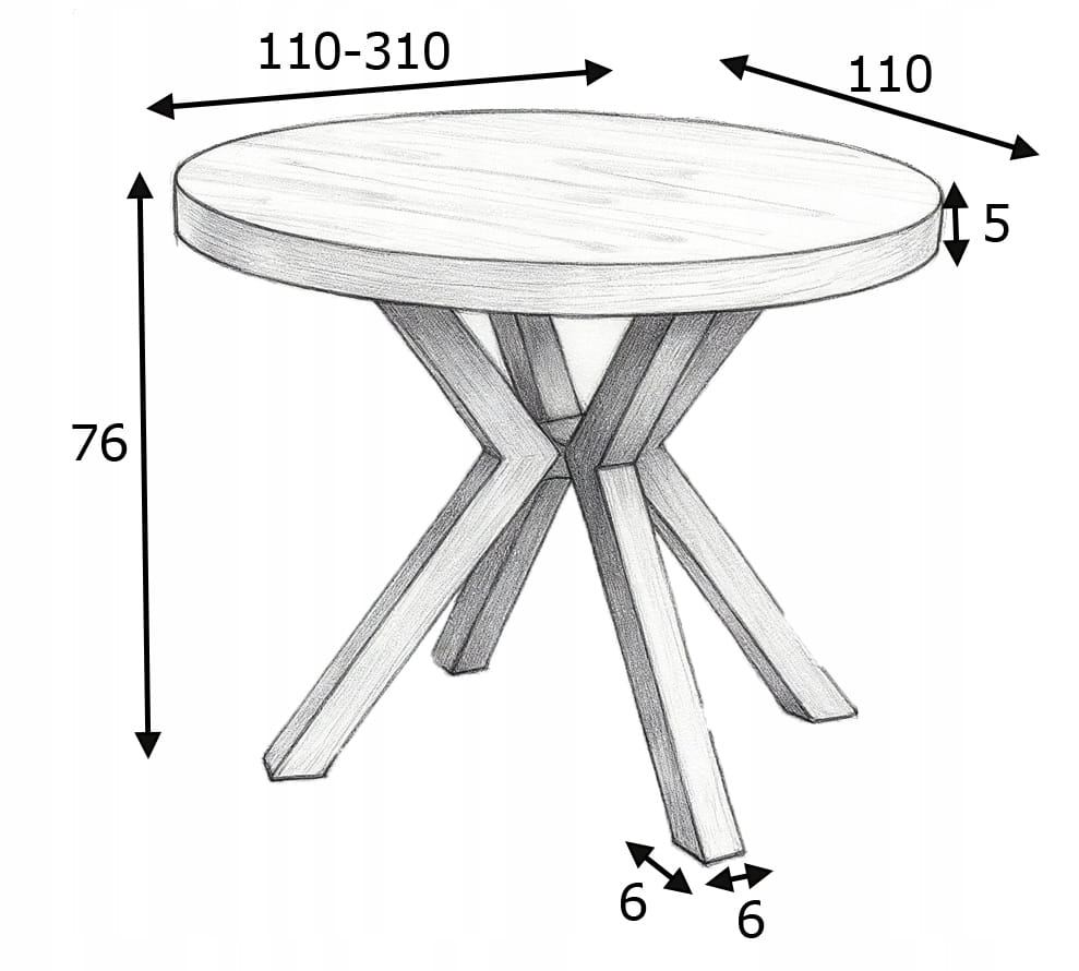 Solidny stół rozkładany RO-7 Ø110/310 cm z nogami X