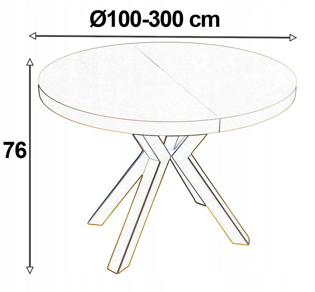 Stół rozkładany Metal X Ø100/300 cm do salonu lub jadalni