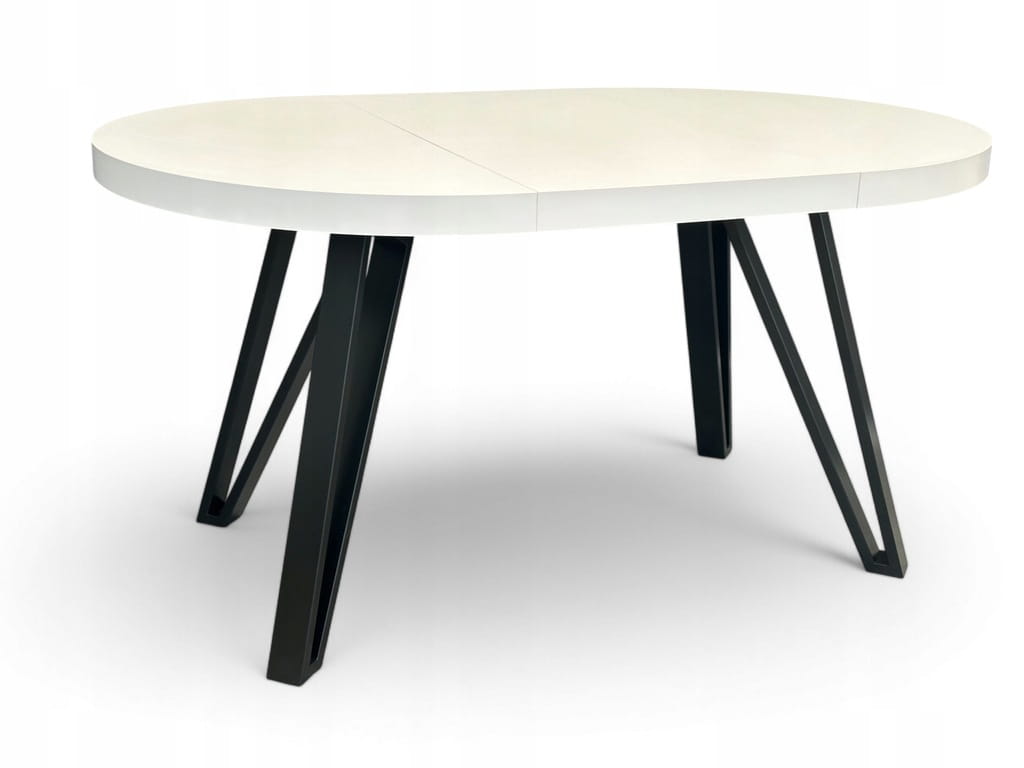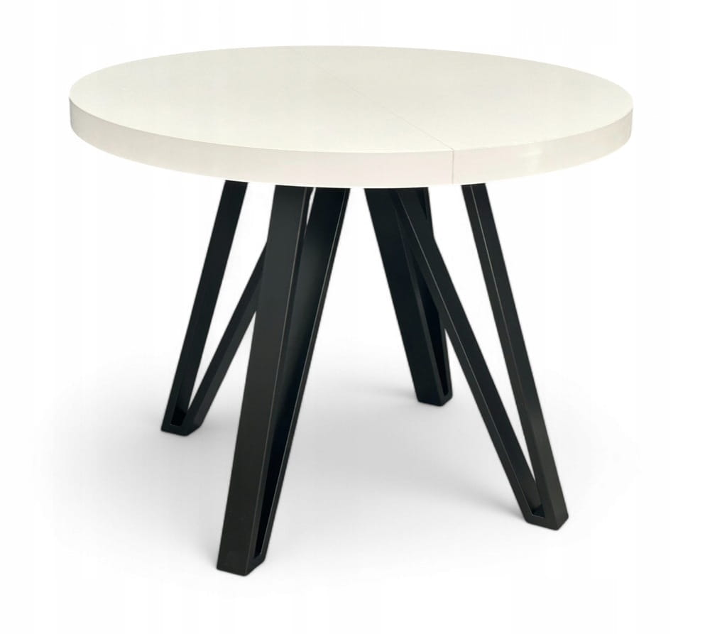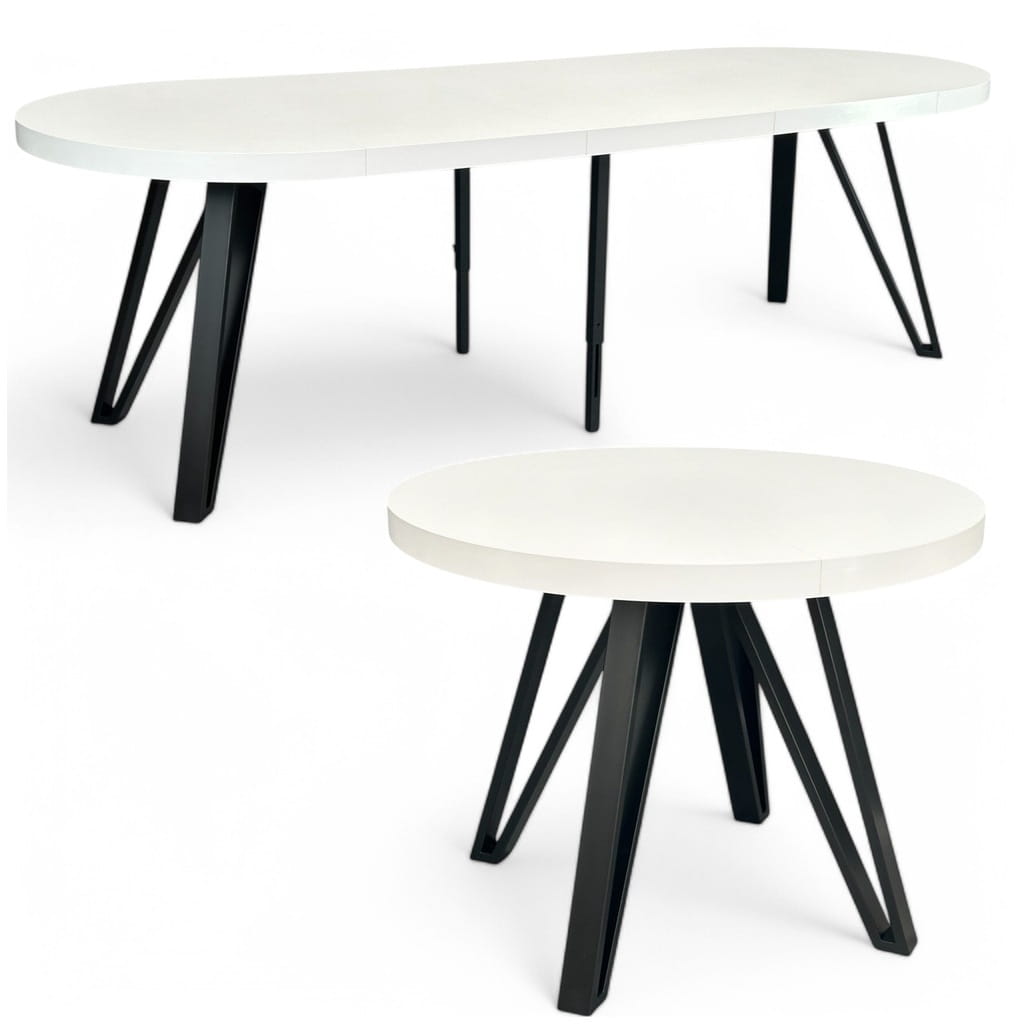Stół duży okrągły rozkładany BIAŁY PÓŁMAT Ø110/310 cm CZARNE NOGI METALOWE