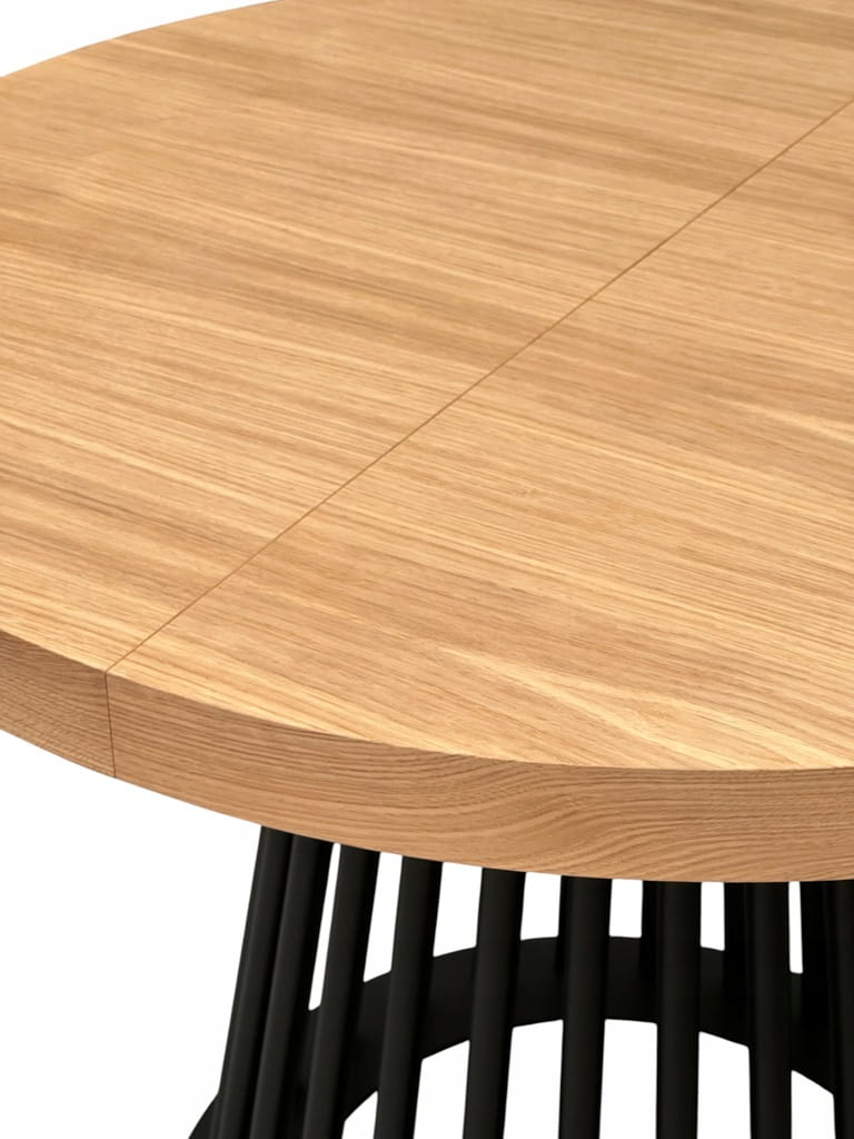 - stół z blatem fornirowanym jest tańszy niż w całości wykonany z litego dębu, ale nadal zachowuje elegancki wygląd mebla z prawdziwego drewna.
