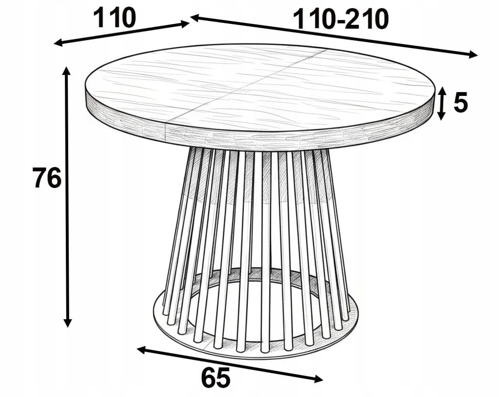 Stół okrągły fornirowany rozkładany Ø110/210 cm