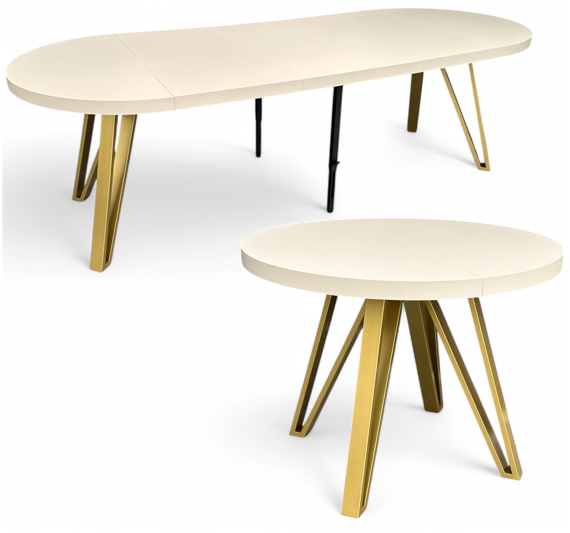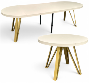 Stół okrągły Ø100 rozkładany do 300 cm KASZMIR + Złoty Metal