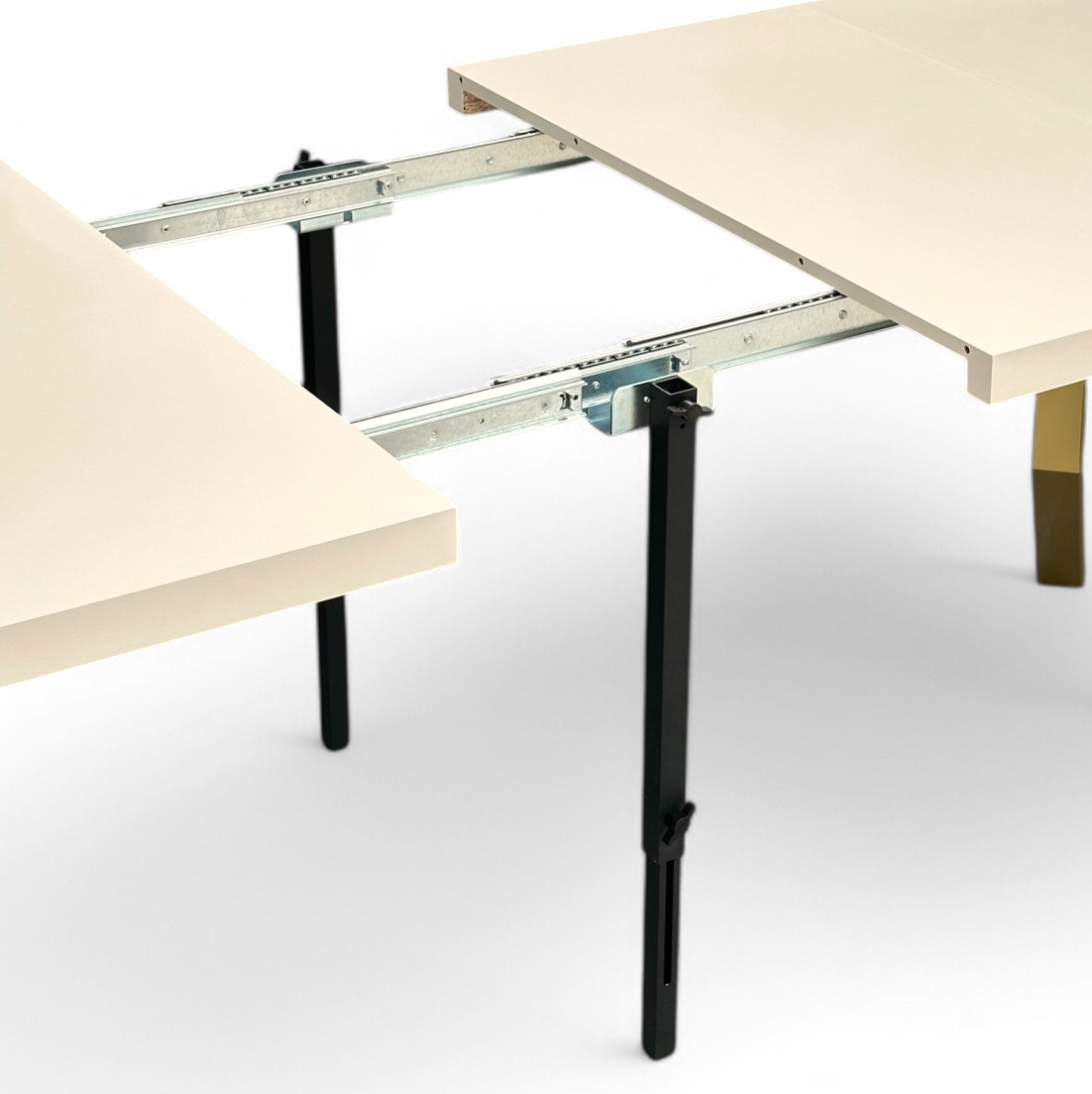 Wspierają konstrukcję rozłożonego stołu. Zalecane przy używaniu trzech i czterech wkładek. Nieużywane nogi chowają się pod blatem.