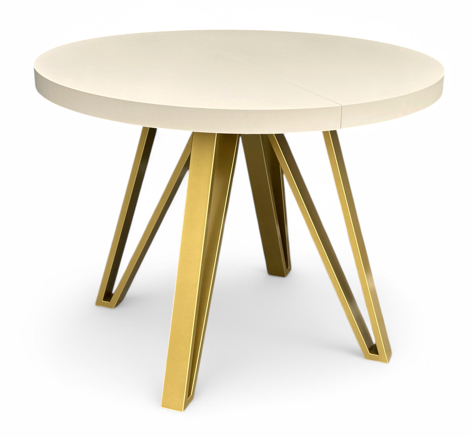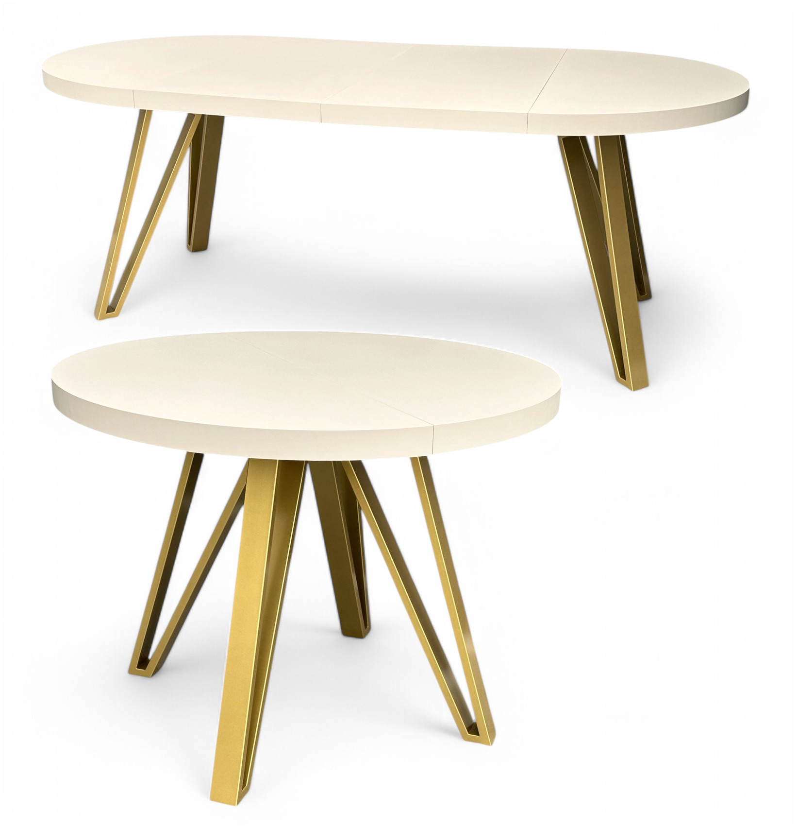 Stół okrągły Ø110 rozkładany + 2x50 cm KASZMIR + Złoty Metal