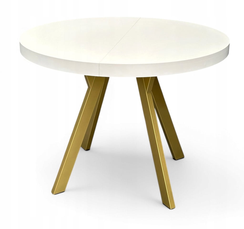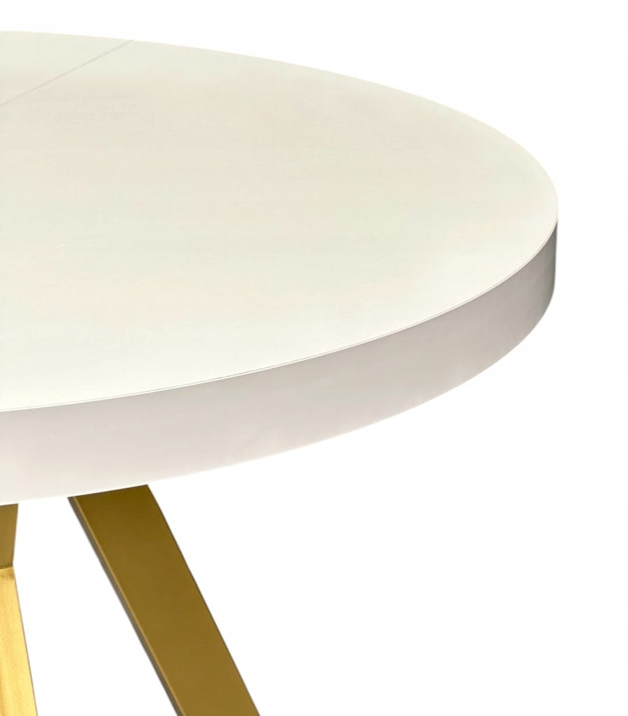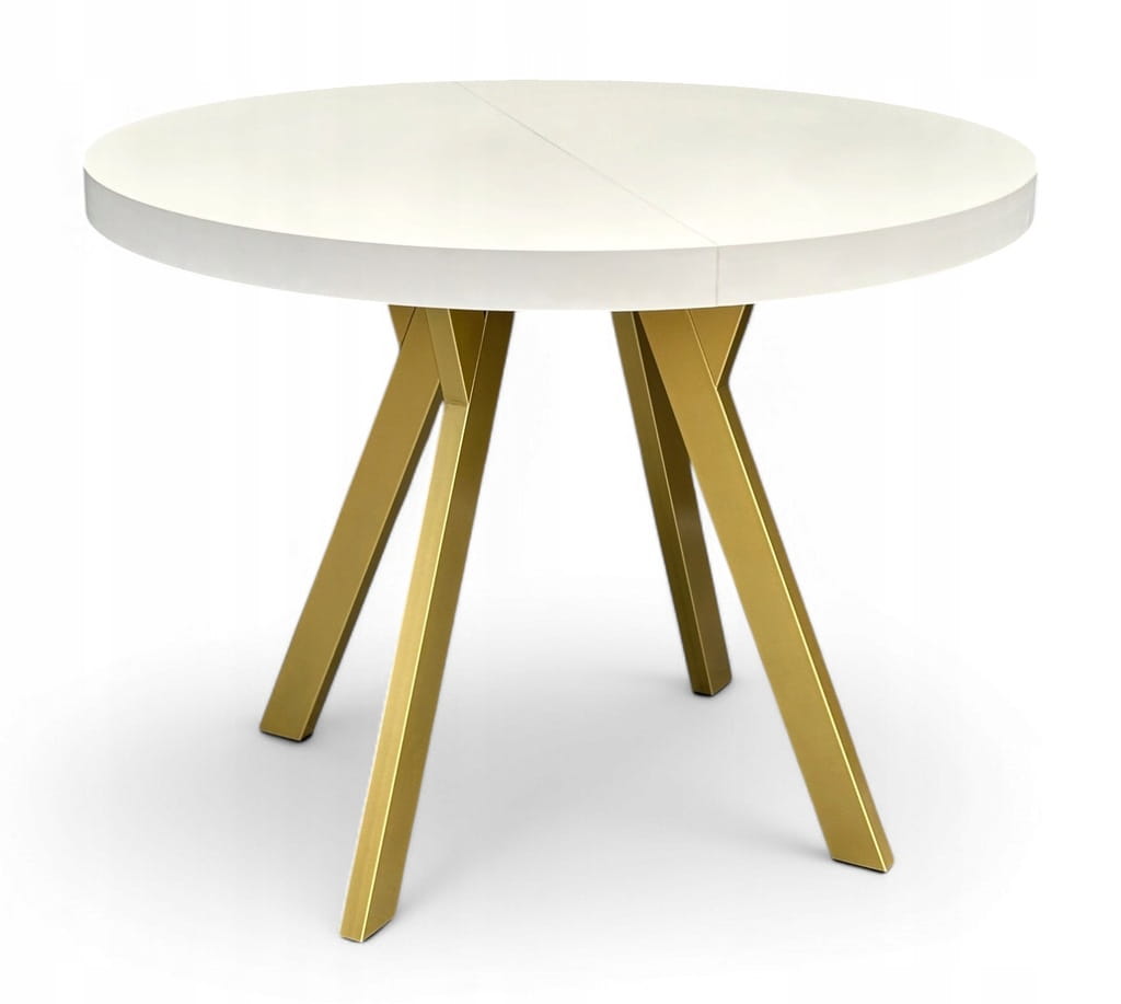 Stół okrągły BIAŁY PÓŁMAT Ø110 rozkładany do 210 cm + Złote Nogi Metalowe Y