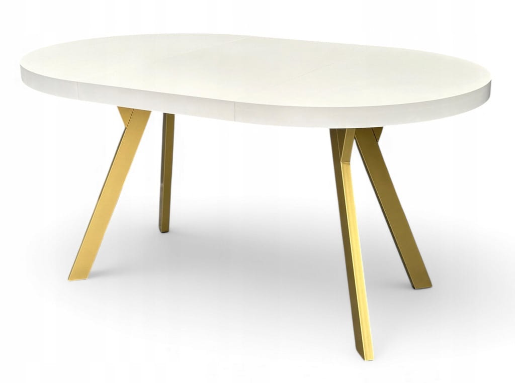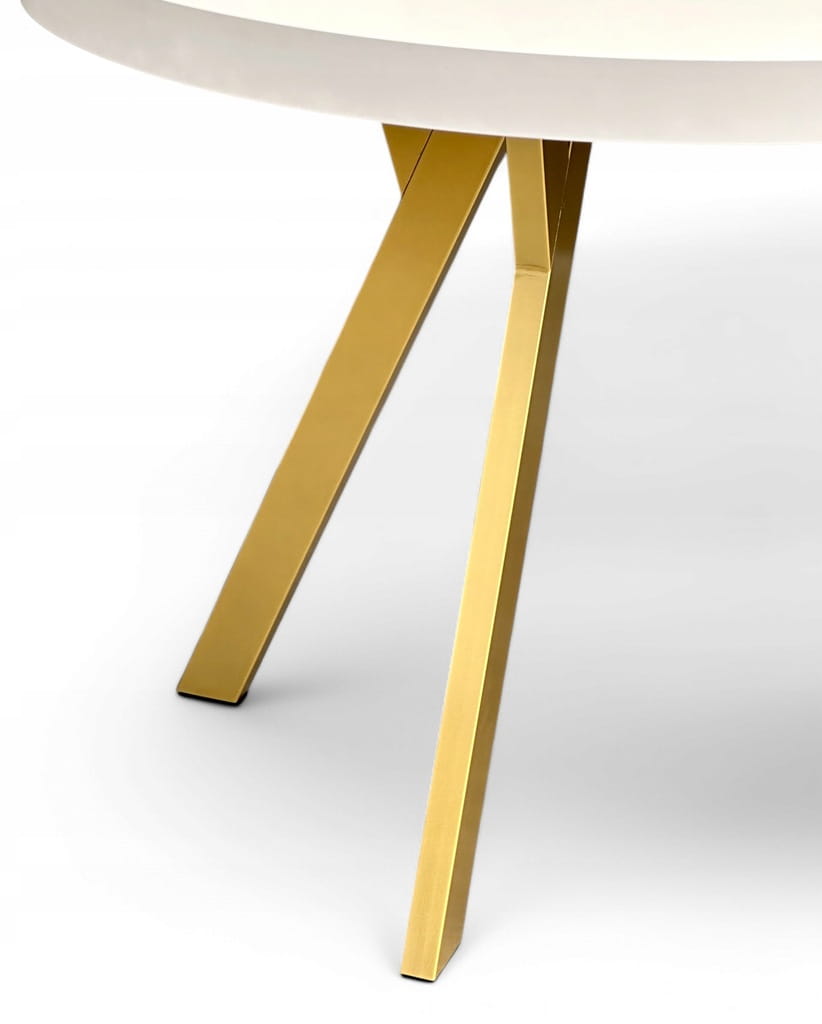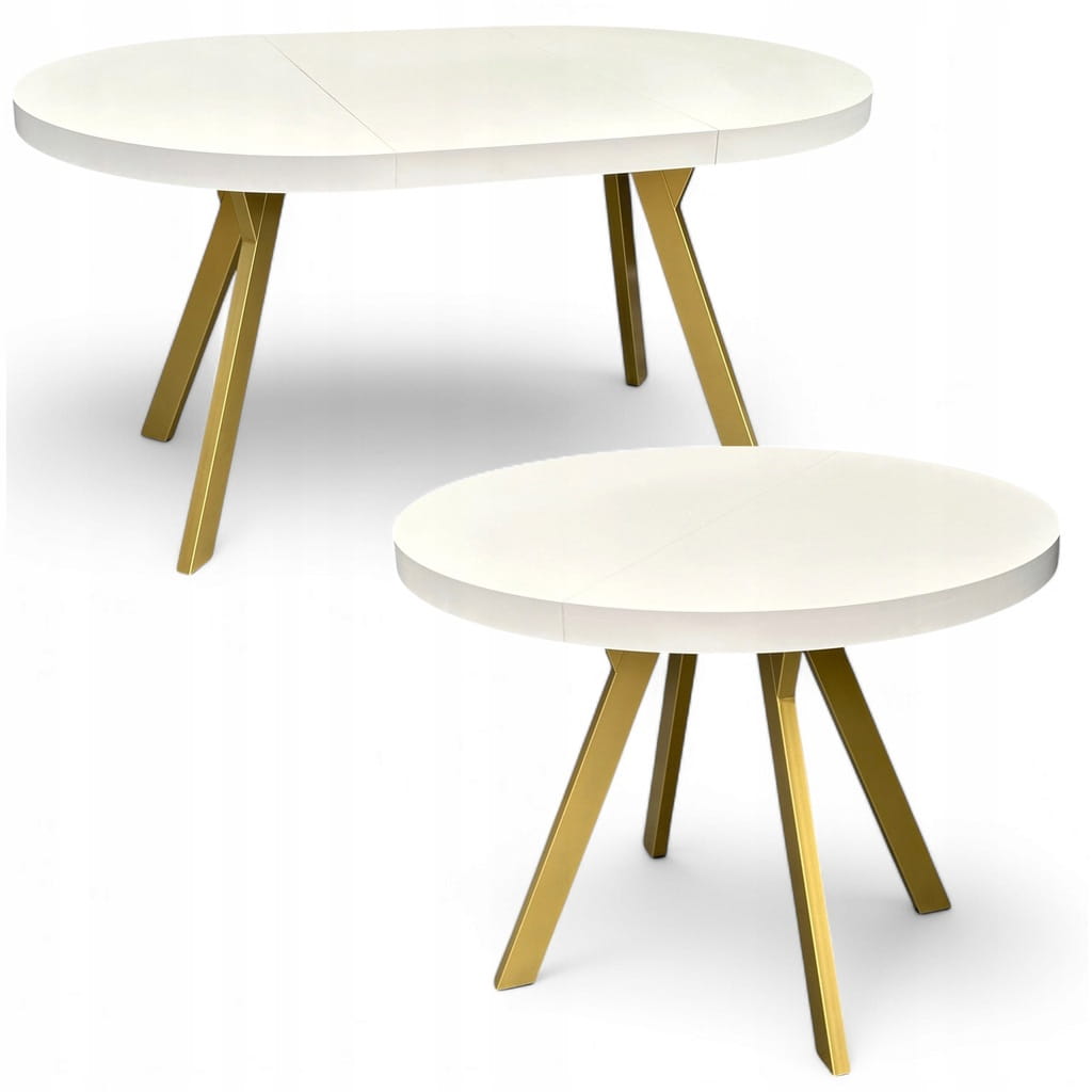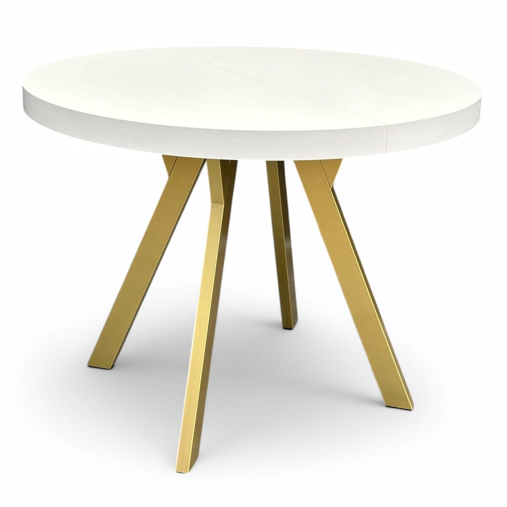 Stół okrągły BIAŁY PÓŁMAT Ø110 rozkładany do 210 cm + Złote Nogi Metalowe Y
