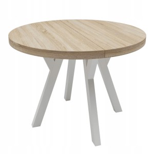Stół okrągły Biały + Dąb SONOMA nierozkładany Ø100 + nogi drewniane