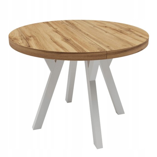 Stół okrągły Biały + Dąb WOTAN nierozkładany Ø100 + nogi drewniane